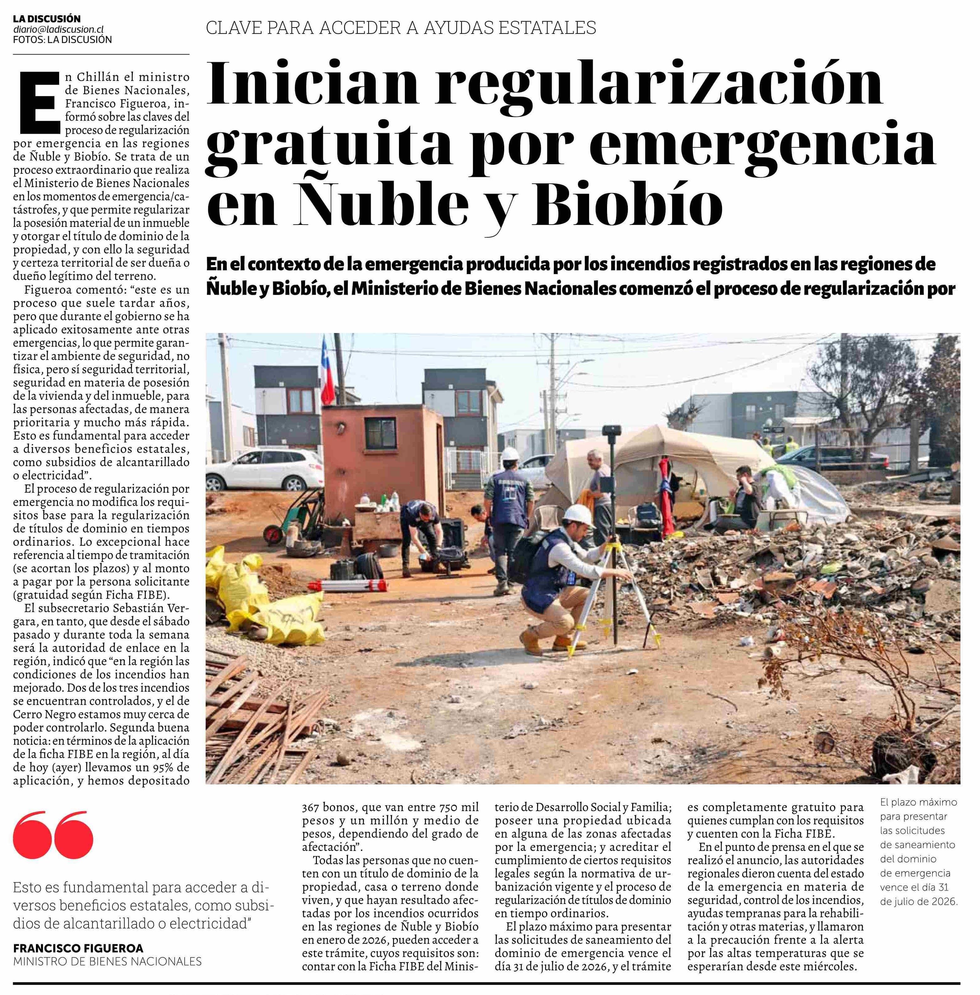 Inician regularización gratuita por emergencia en Nuble y Biobio
