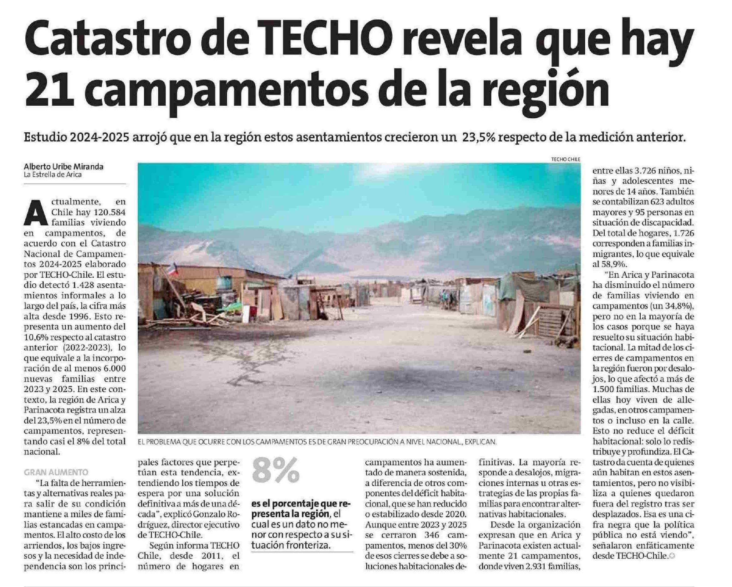 Catastro de TECHO revela que hay 21 campamentos de la región