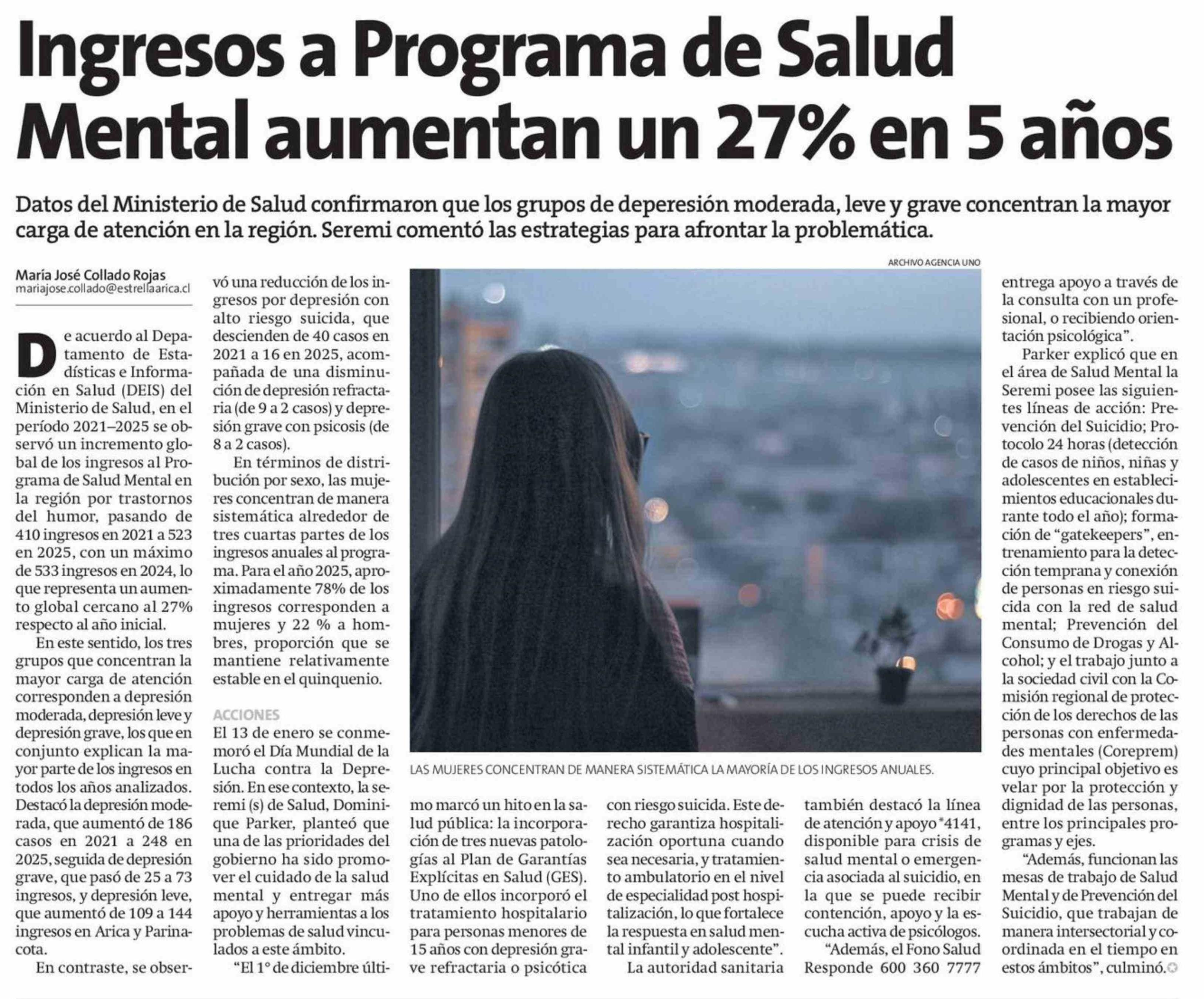 Ingresos a Programa de Salud Mental aumentan un 27% en 5 años
