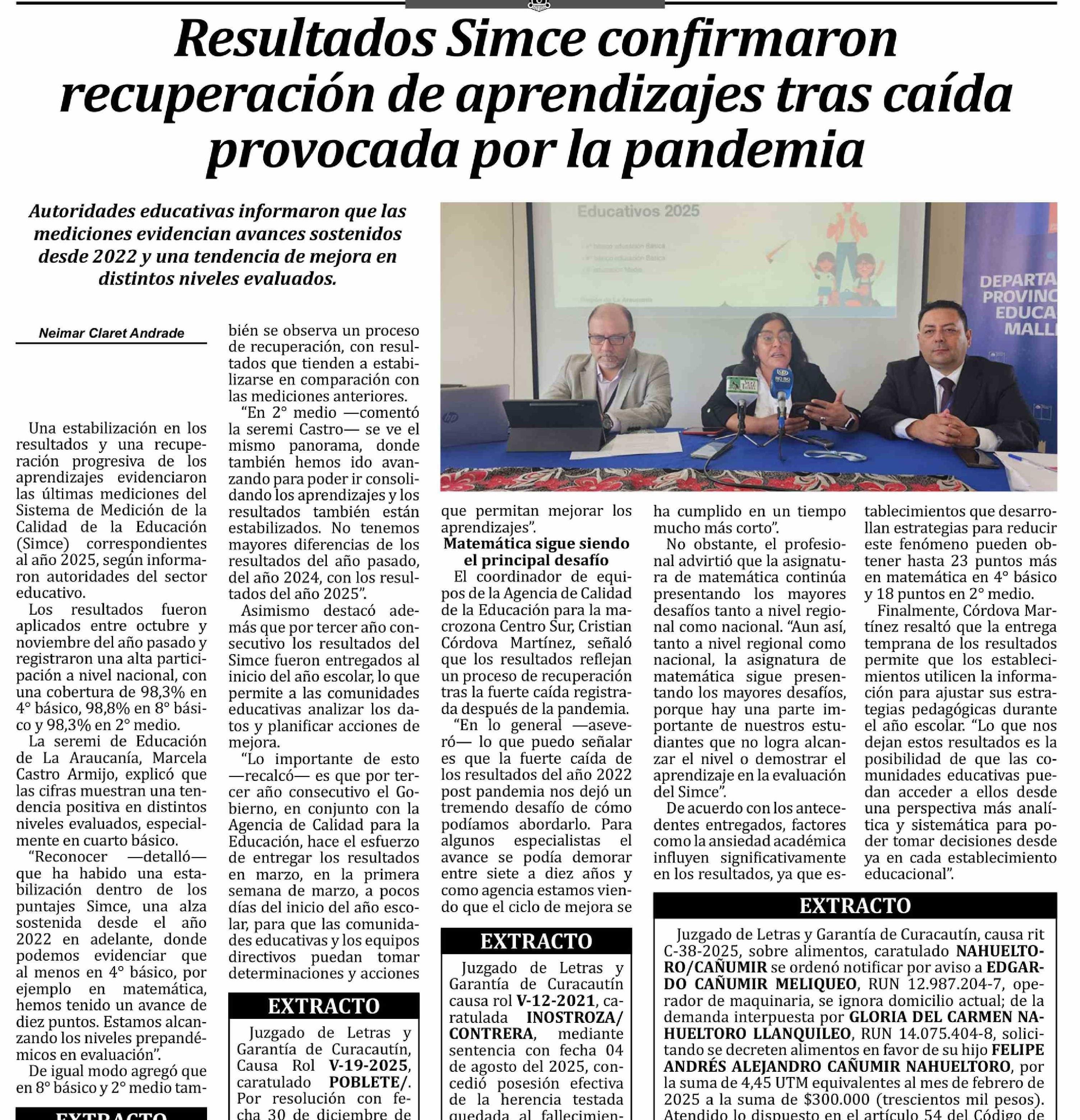 Título: Resultados Simce confirmaron recuperación de aprendizajes tras caída provocada por la pandemia