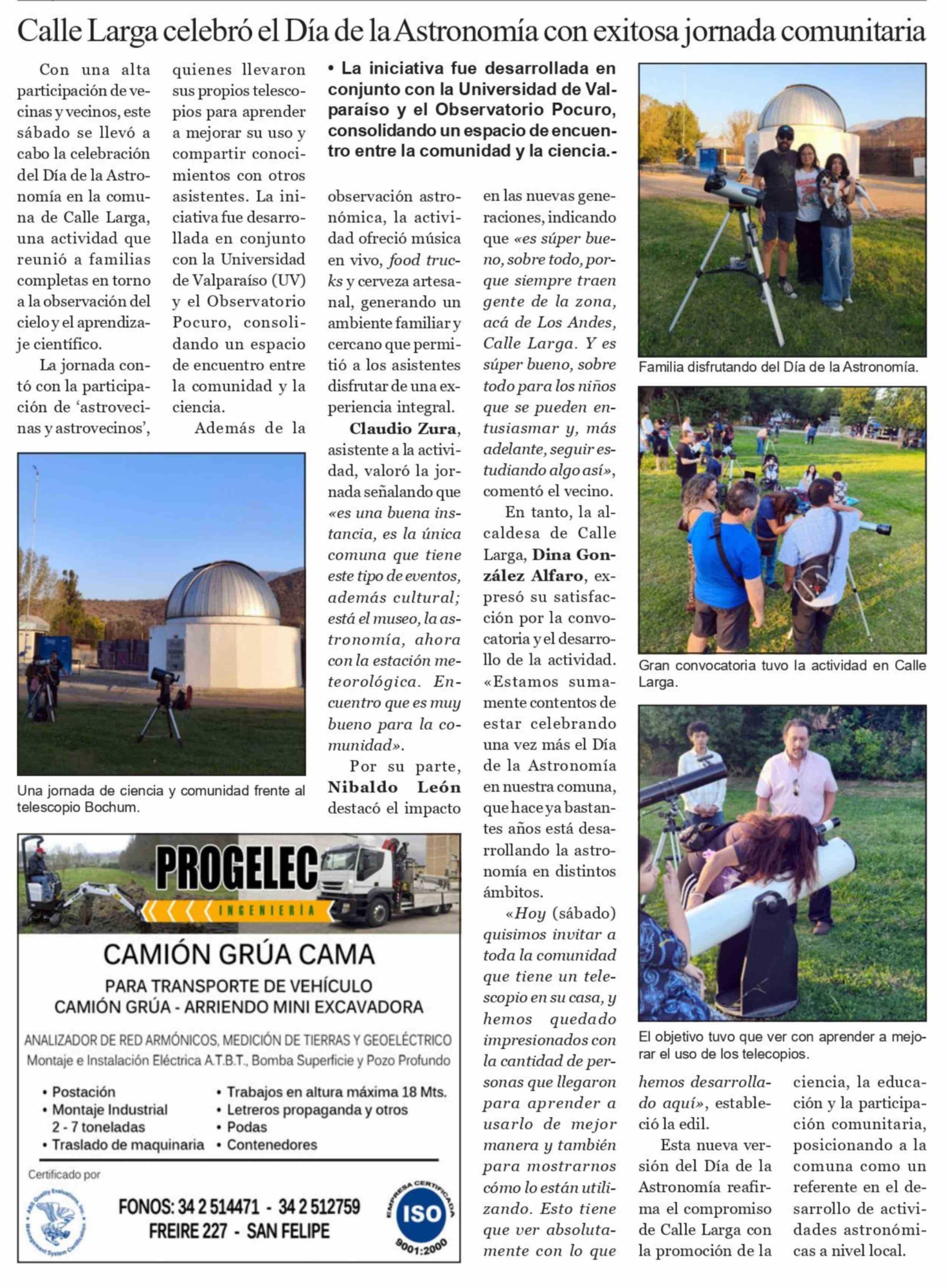Título: Calle Larga celebró el Día de la Astronomía con exitosa jornada comunitaria