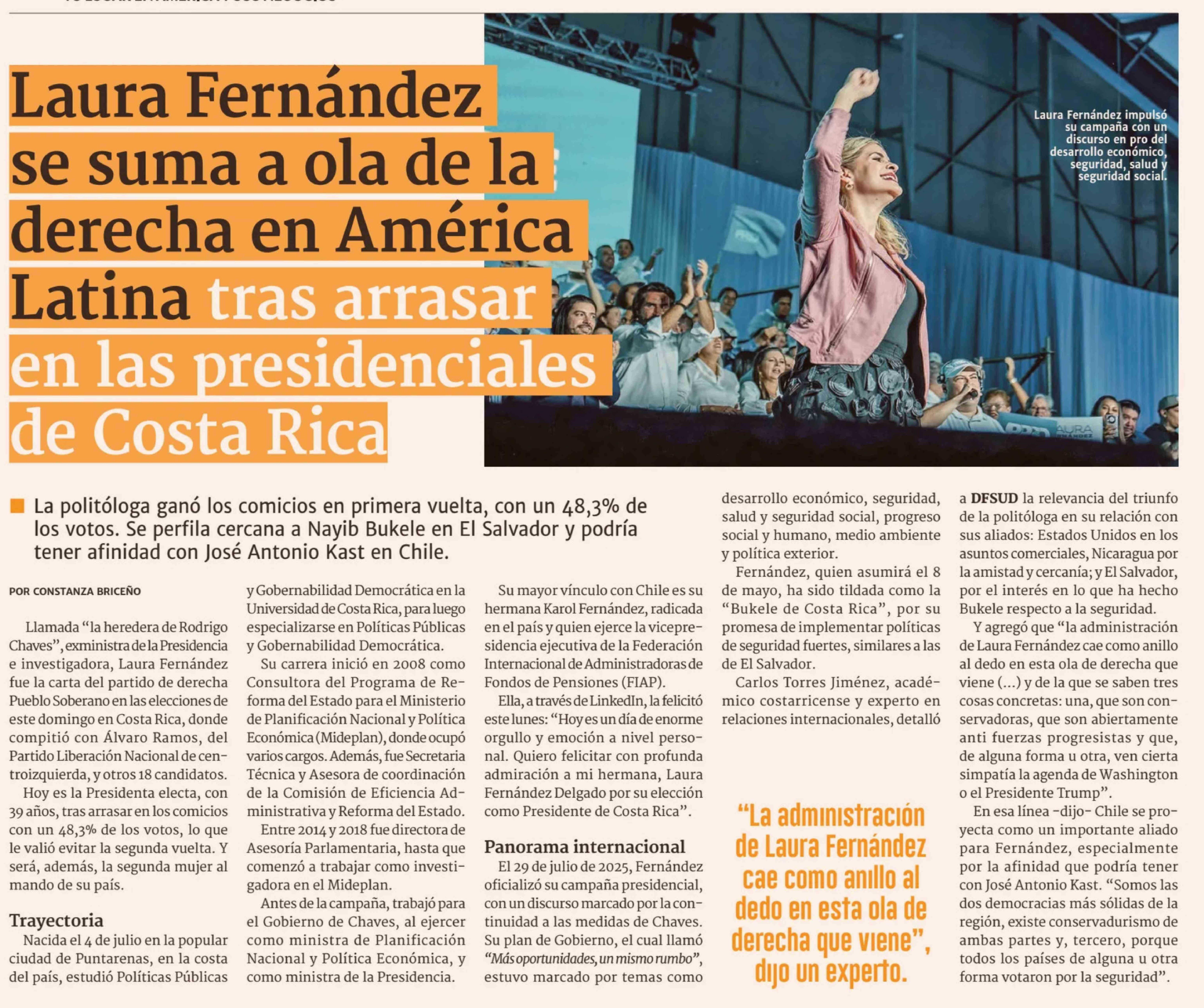 Laura Fernández se suma a ola de la derecha en América Latina tras arrasar en las presidenciales de Costa Rica