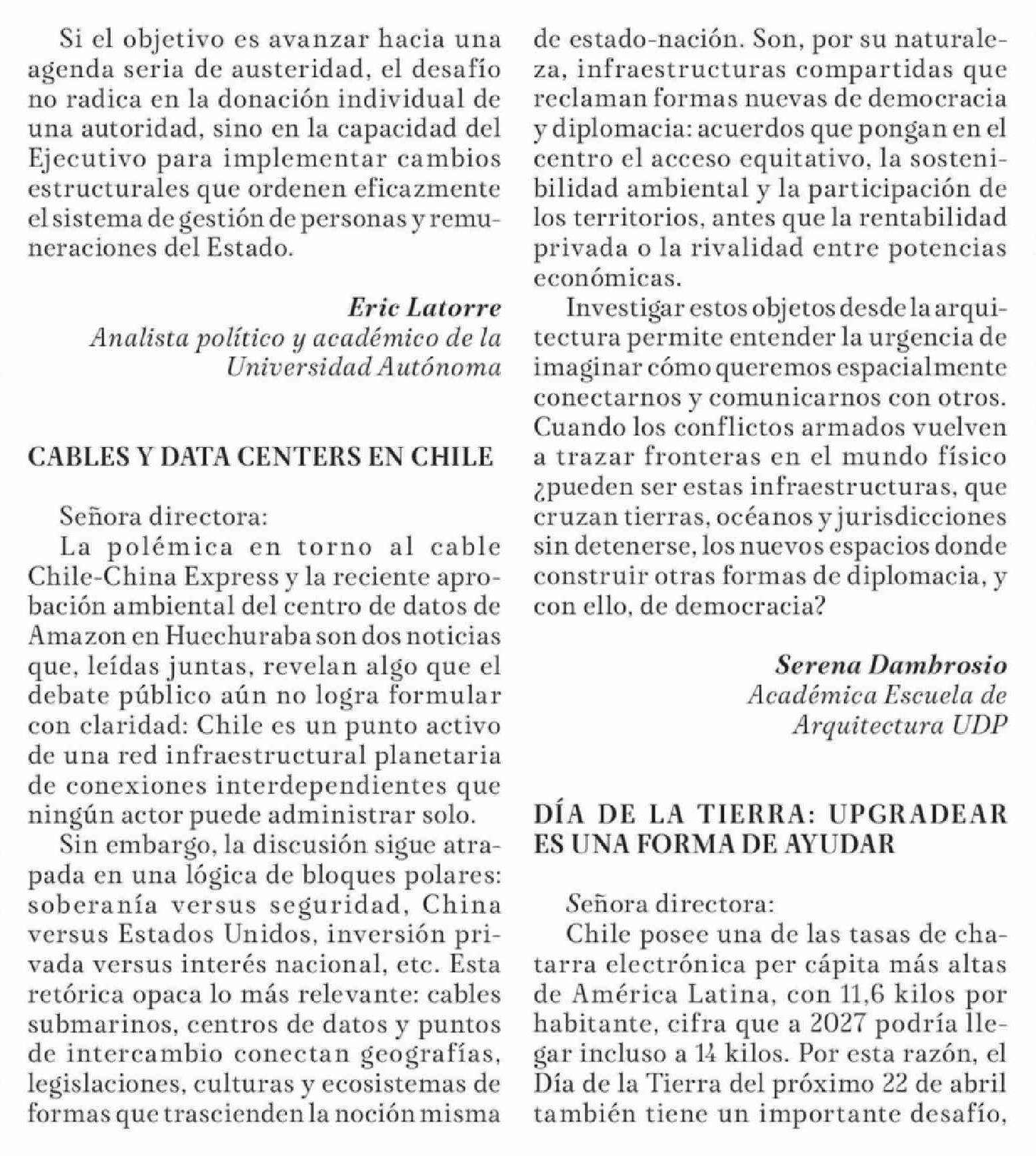 Cartas: CABLES Y DATA CENTERS EN CHILE