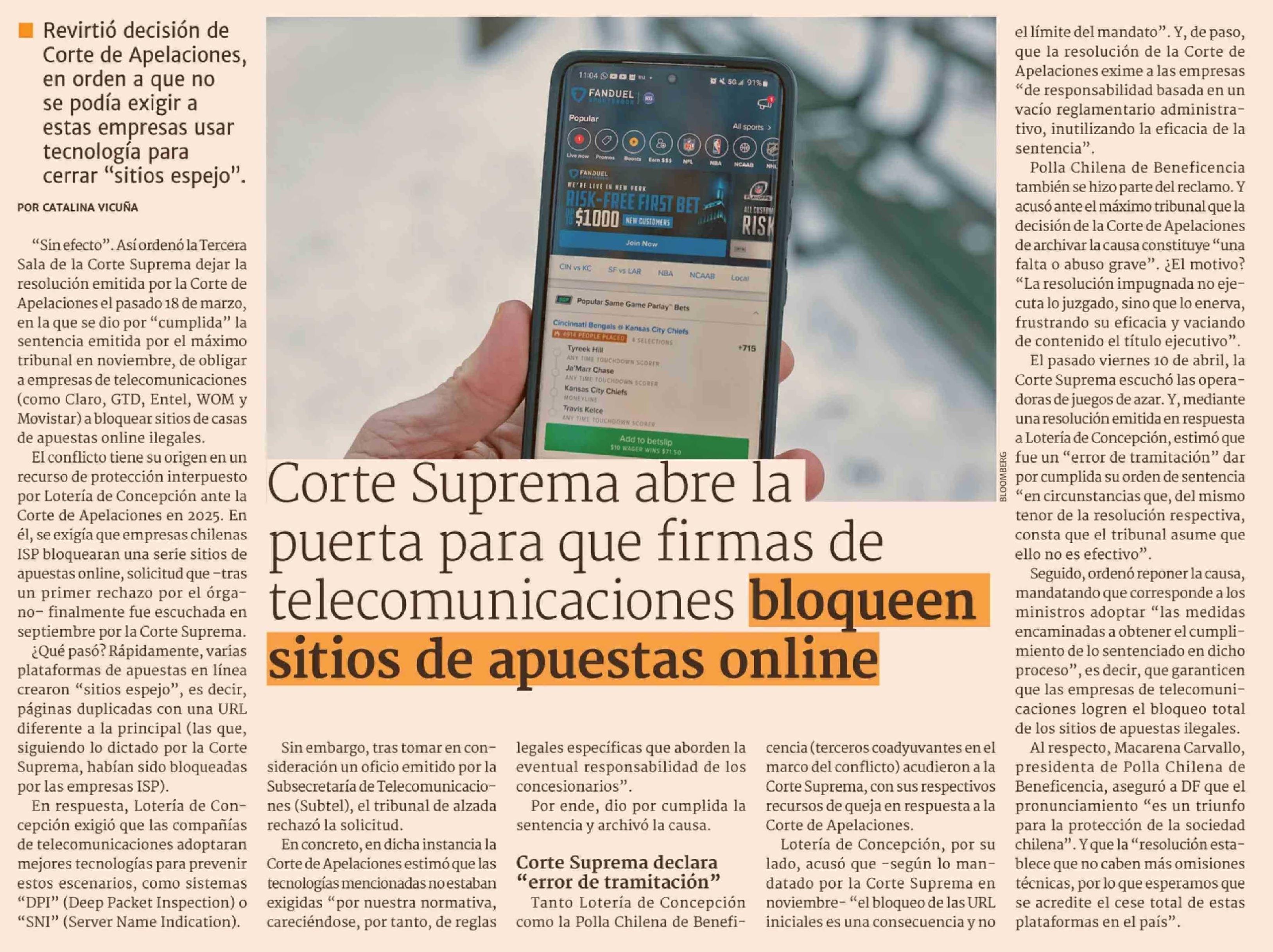 Corte Suprema abre la puerta para que firmas de telecomunicaciones bloqueen sitios de apuestas online