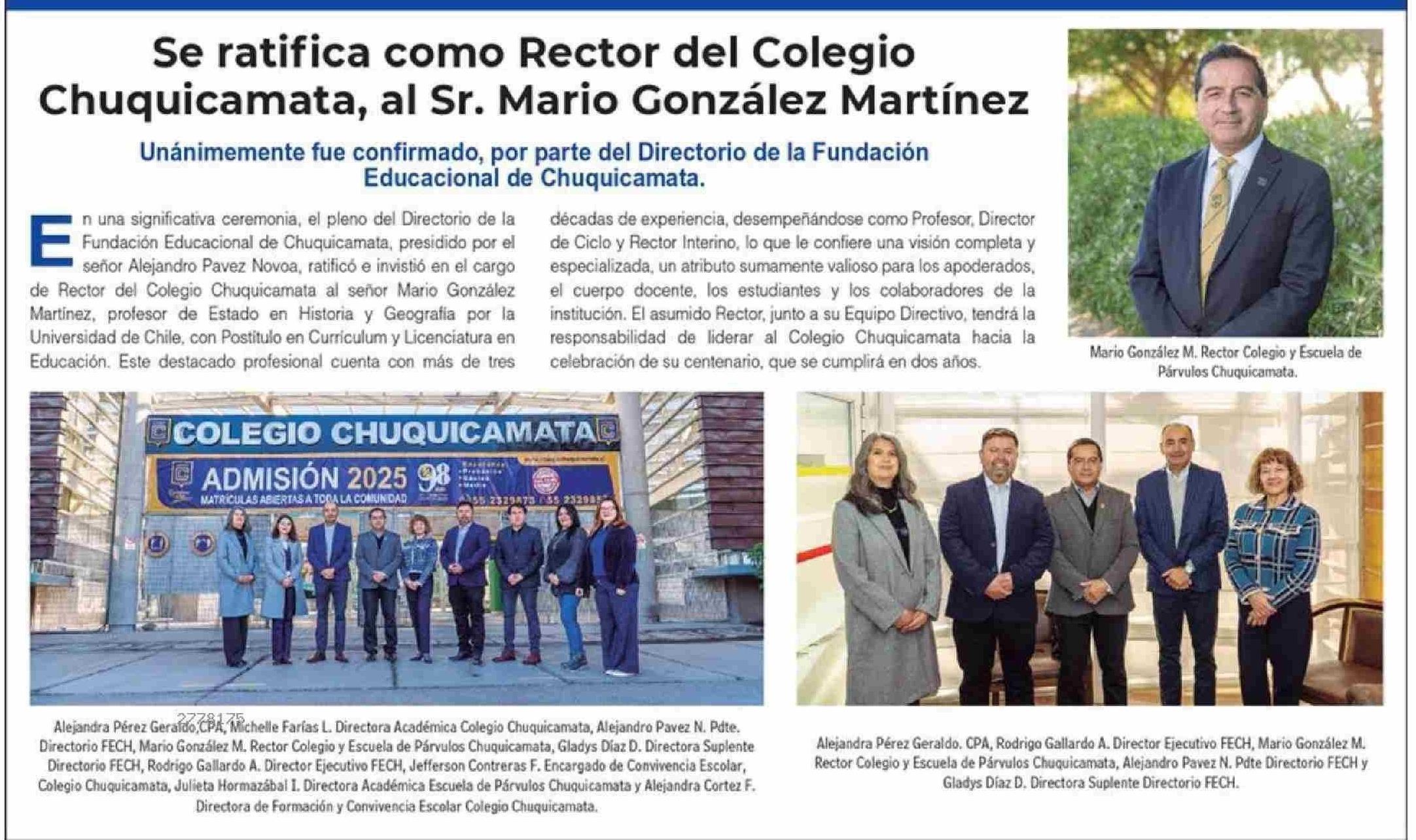 Se ratifica como Rector del Colegio Chuquicamata, al Sr. Mario González Martínez