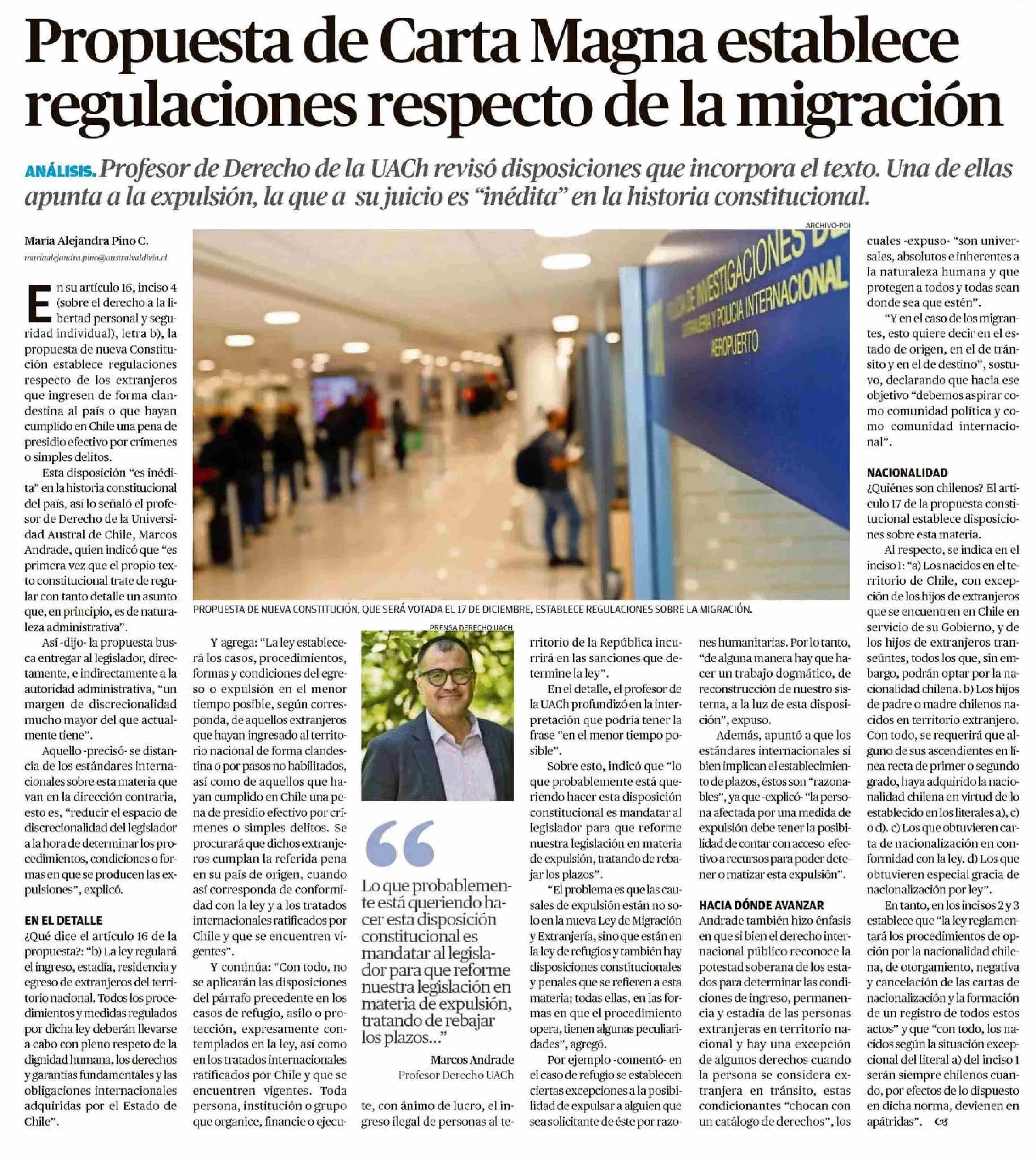Propuesta de Carta Magna establece regulaciones respecto de la migración