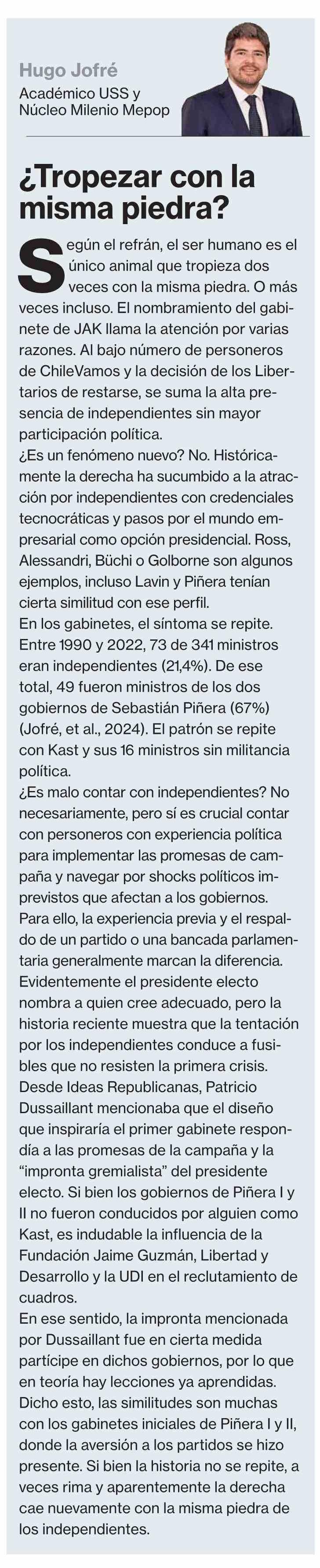 Título: Columnas de Opinión: ¿Tropezar con la misma piedra?