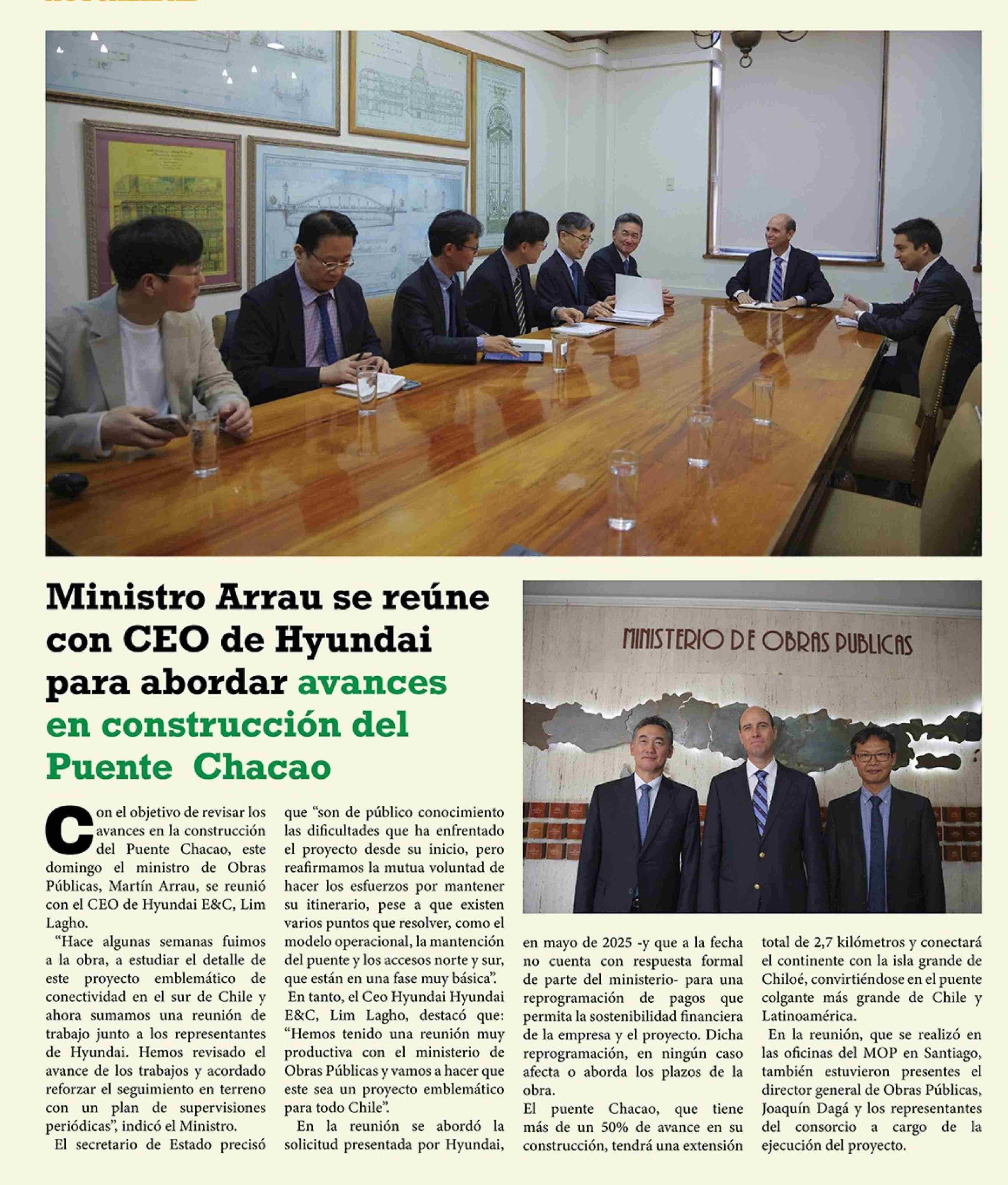 Ministro Arrau se reúne con CEO de Hyundai para abordar avances en construcción del Puente Chacao