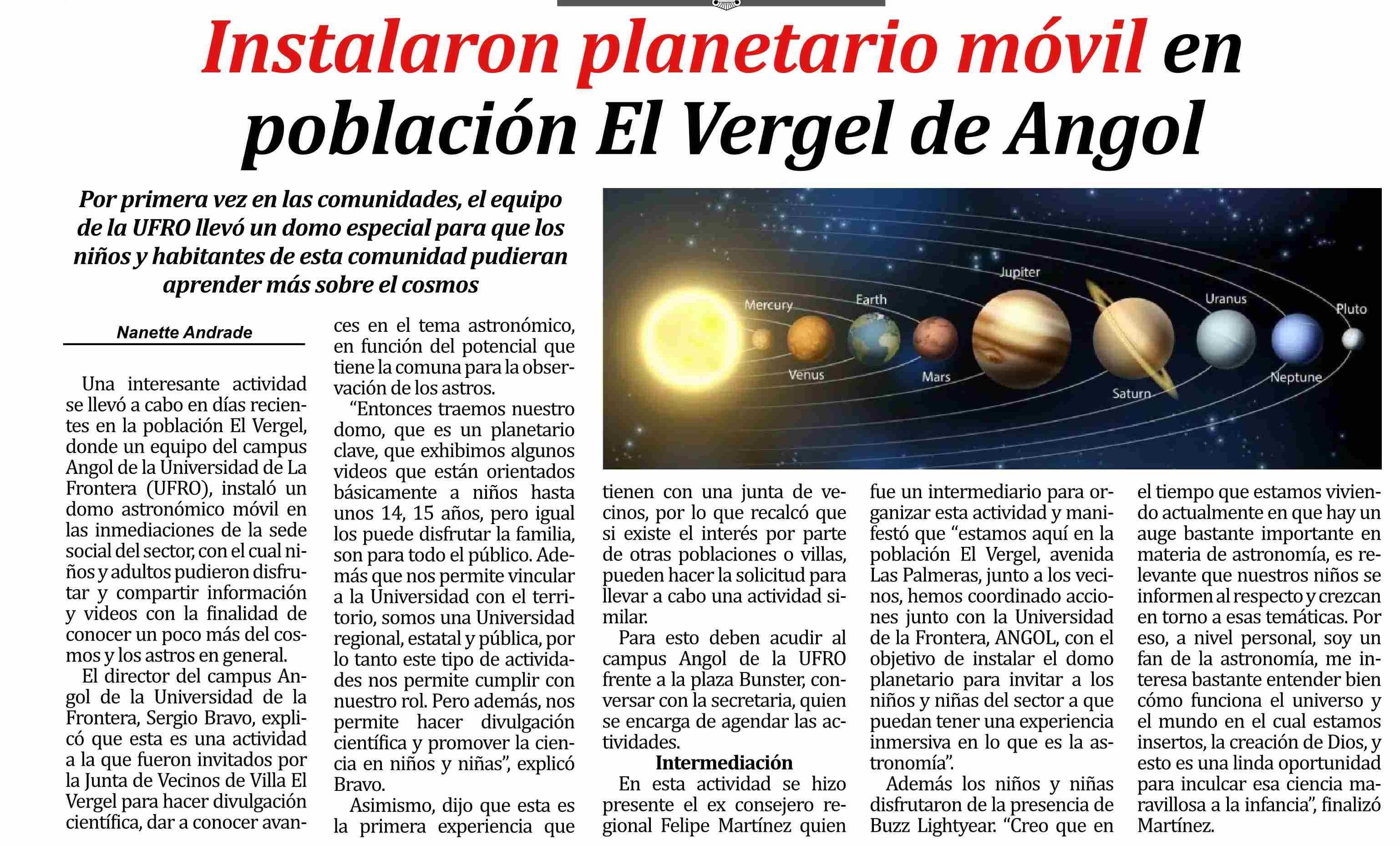 Instalaron planetario móvil en población El Vergel de Angol