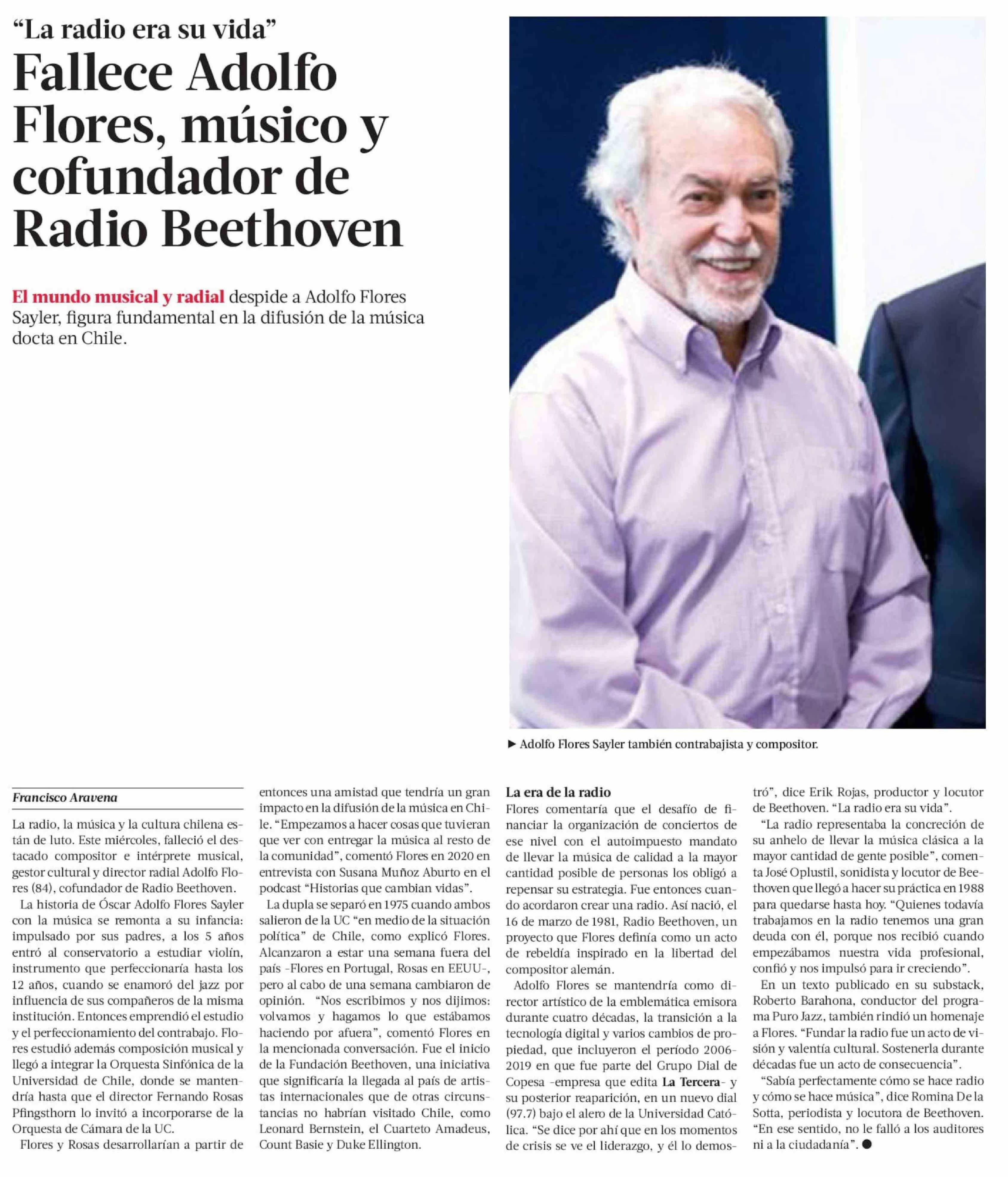 Fallece Adolfo Flores, músico y cofundador de Radio Beethoven