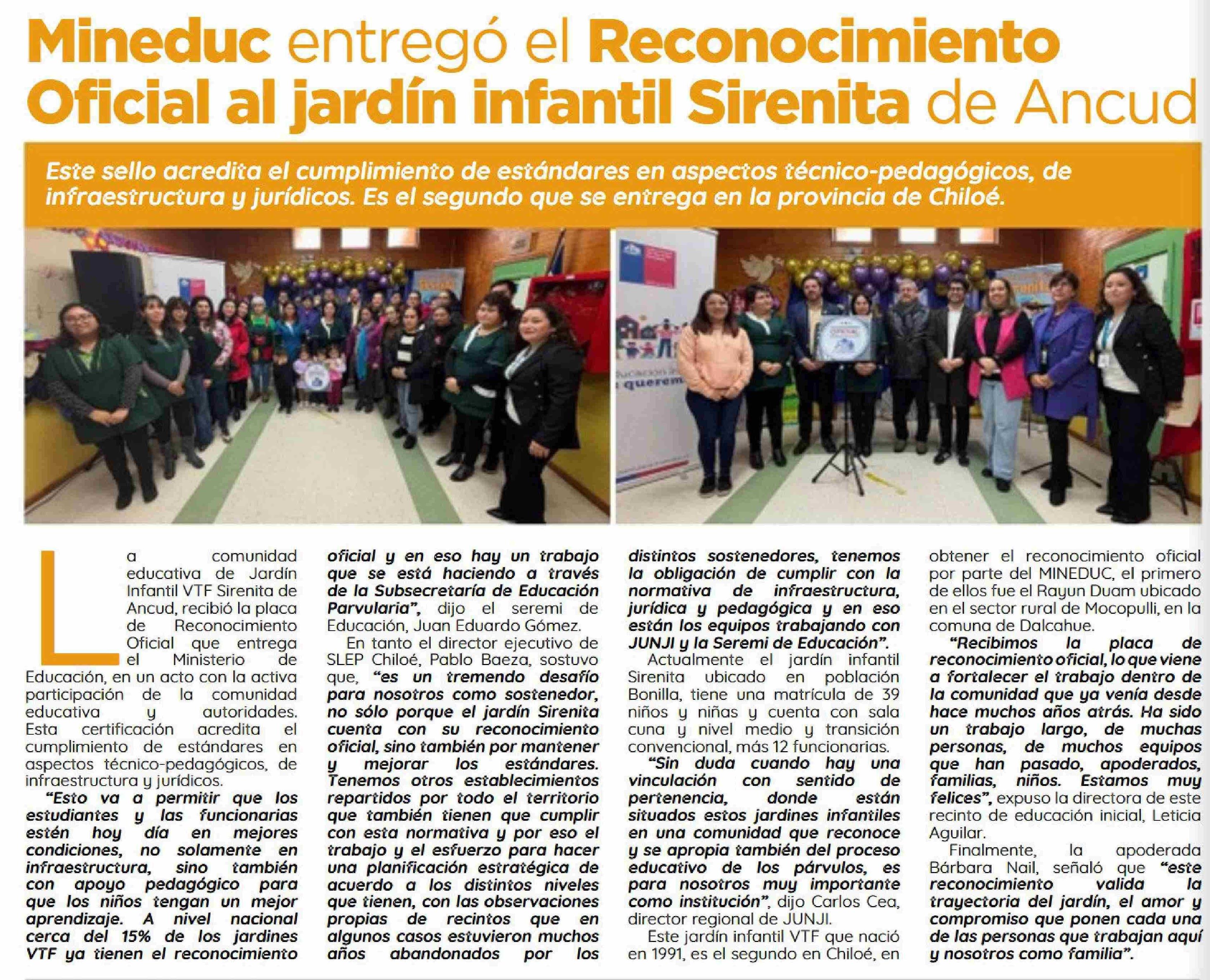 Mineduc entregó el Reconocimiento Oficial al jardín infantil Sirenita de Ancud