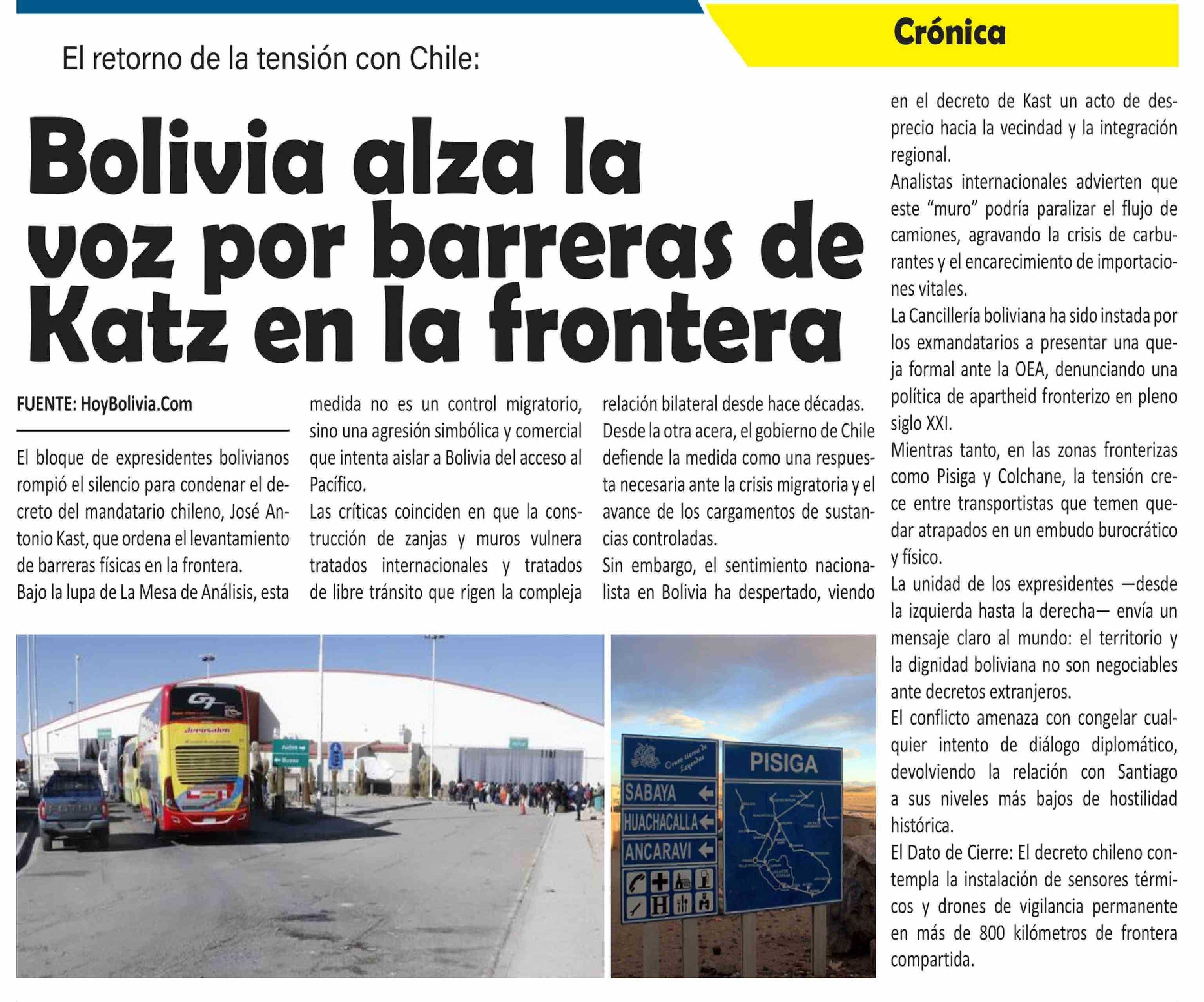 Bolivia alza la voz por barreras de Katz en la frontera