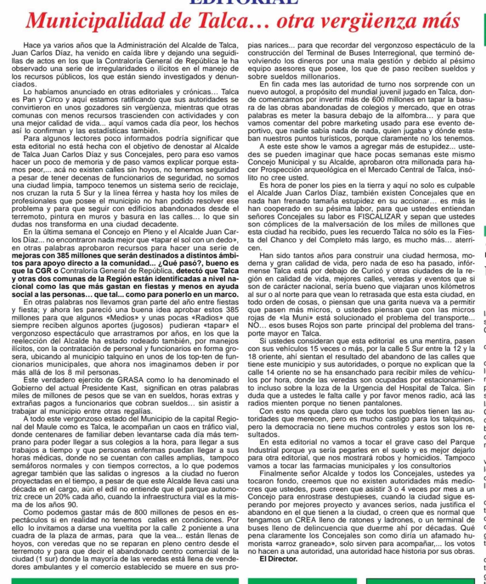 Editorial: Municipalidad de Talca ... otra vergüenza más