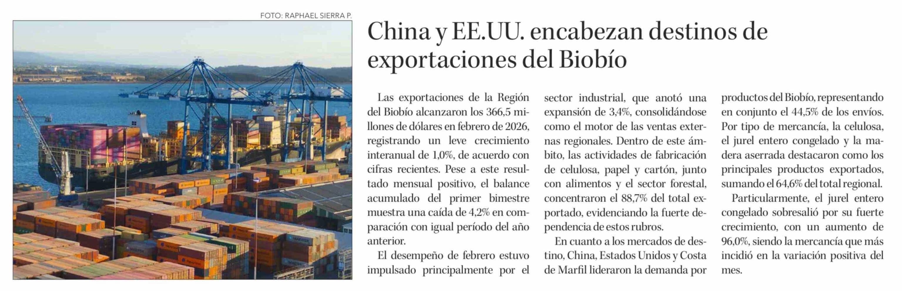 China y EE.UU. encabezan destinos de exportaciones del Biobío