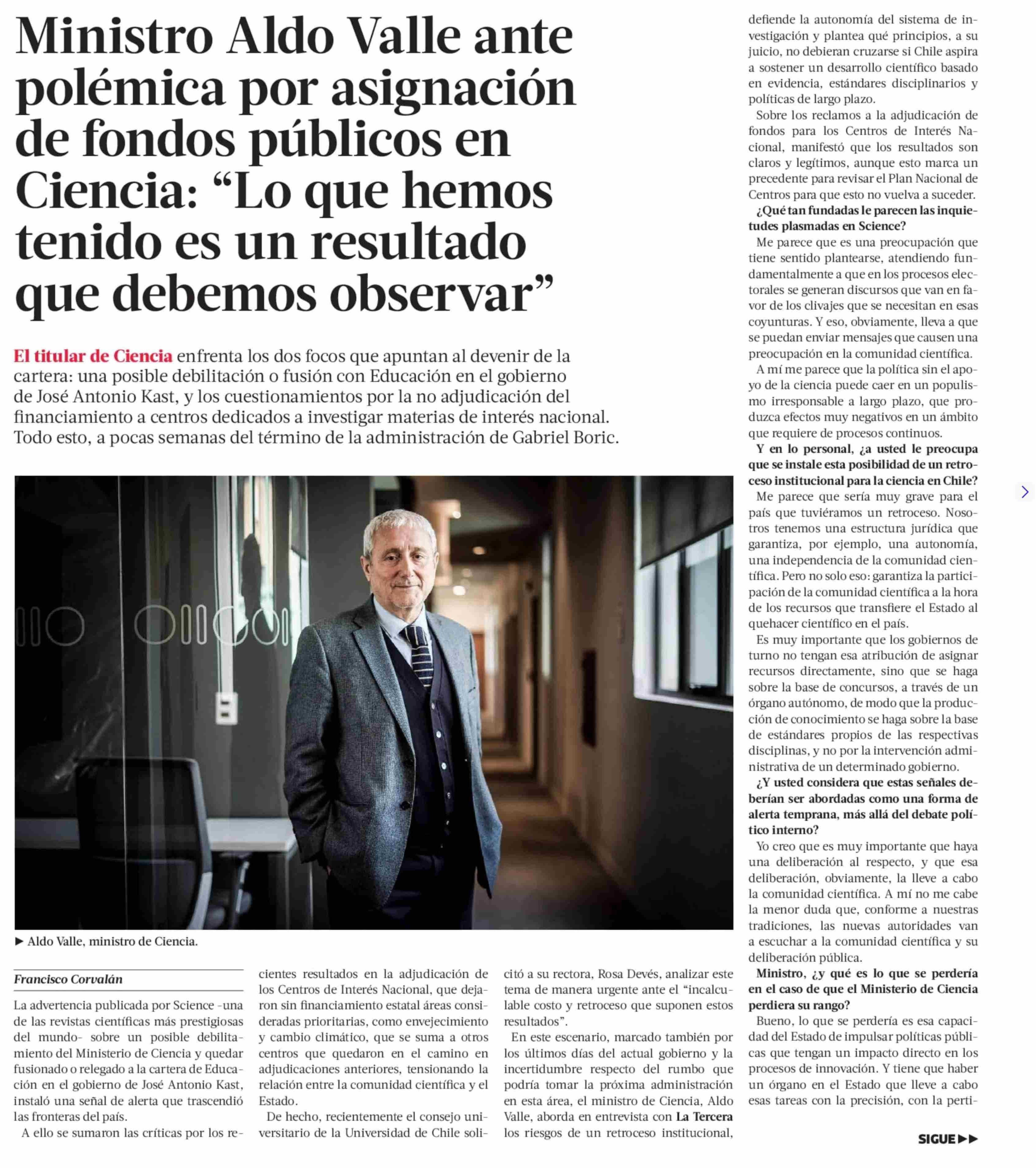 Ministro Aldo Valle ante polémica por asignación de fondos públicos en Ciencia: "Lo que hemos tenido es un resultado que debemos observar"