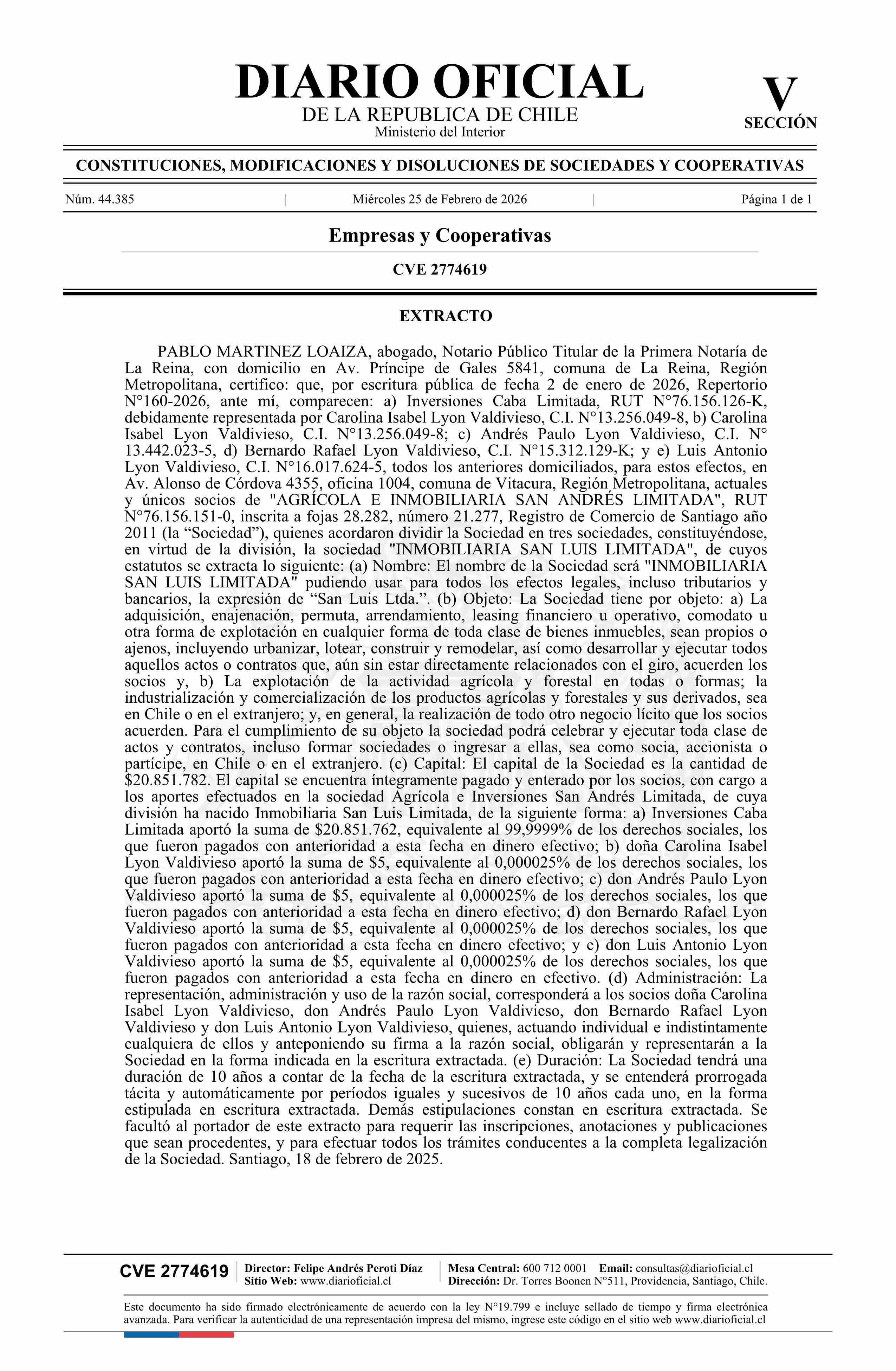 Inmobiliaria San Luis Limitada