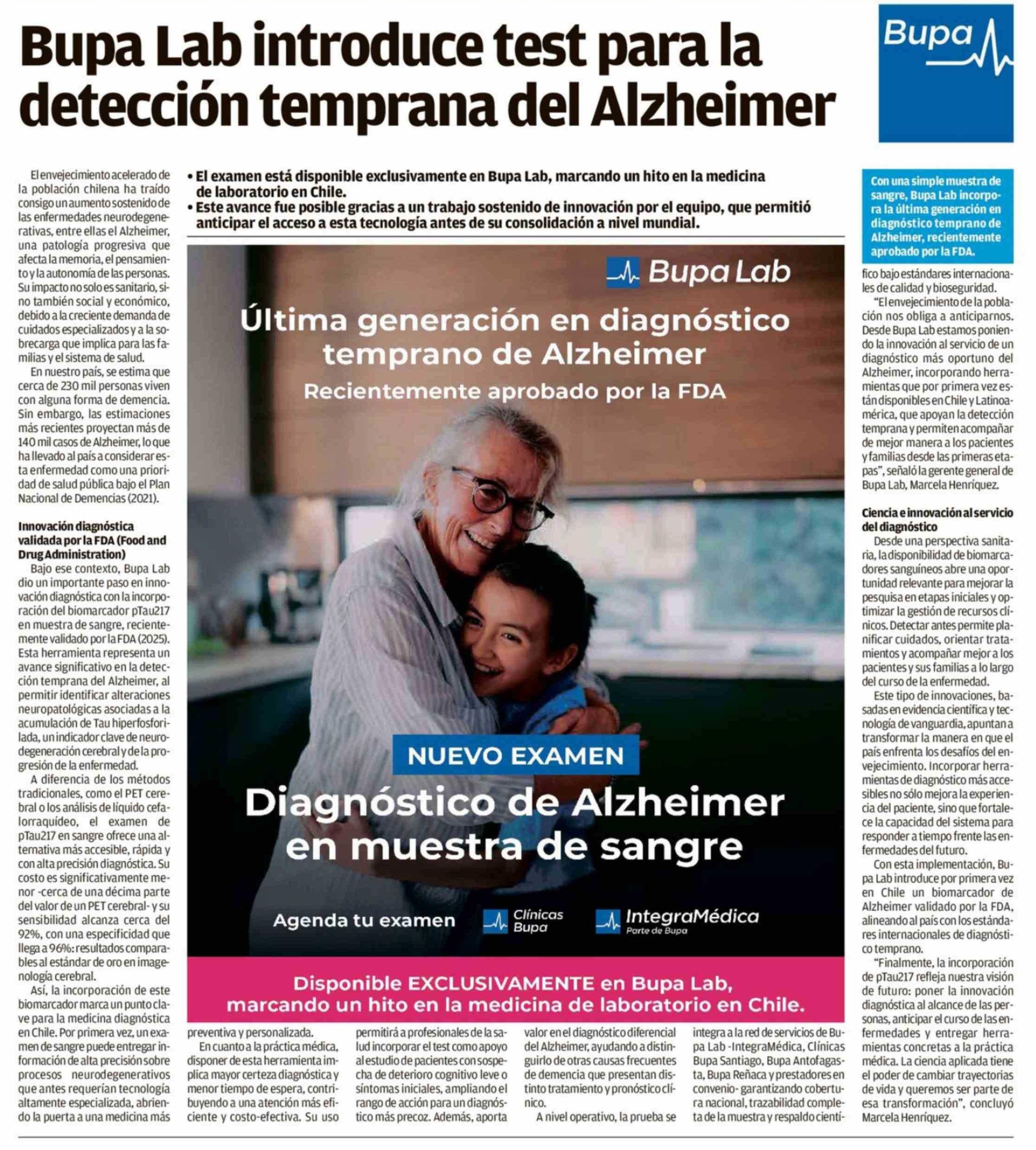 Bupa Lab introduce test para la detección temprana del Alzheimer