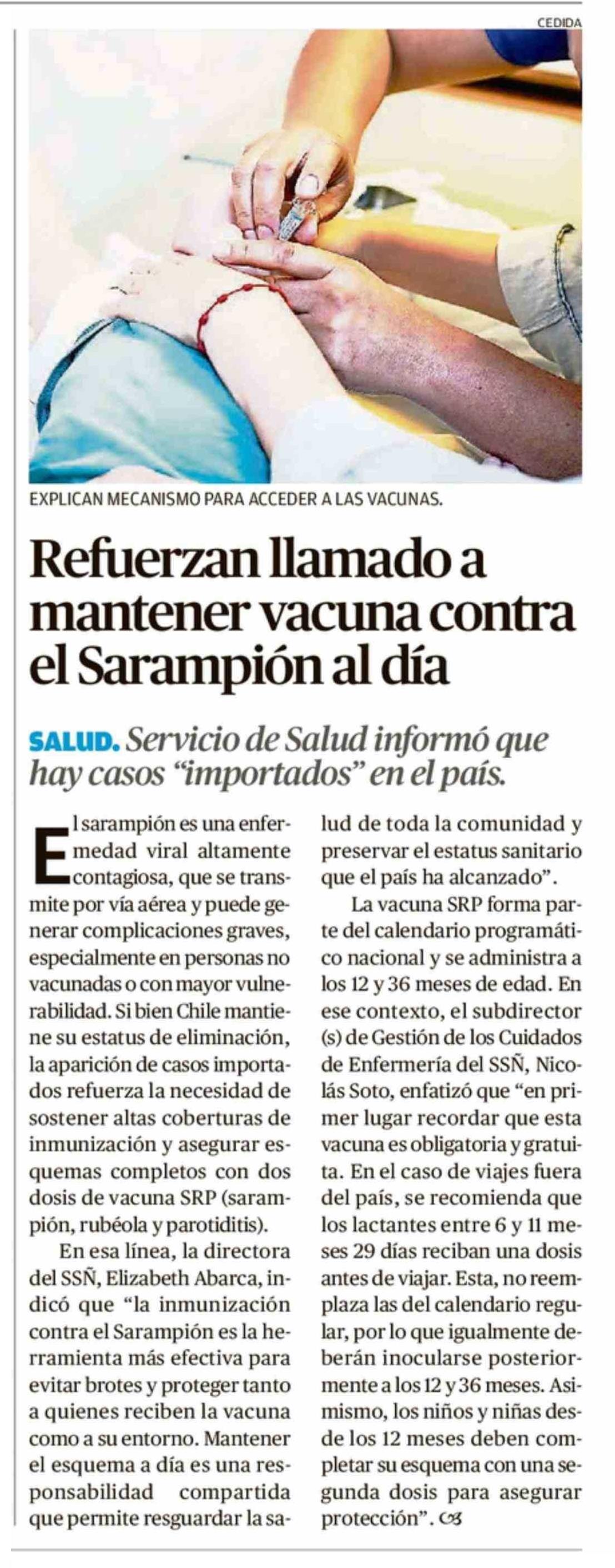 Refuerzan llamado a mantener vacuna contra el Sarampión al día