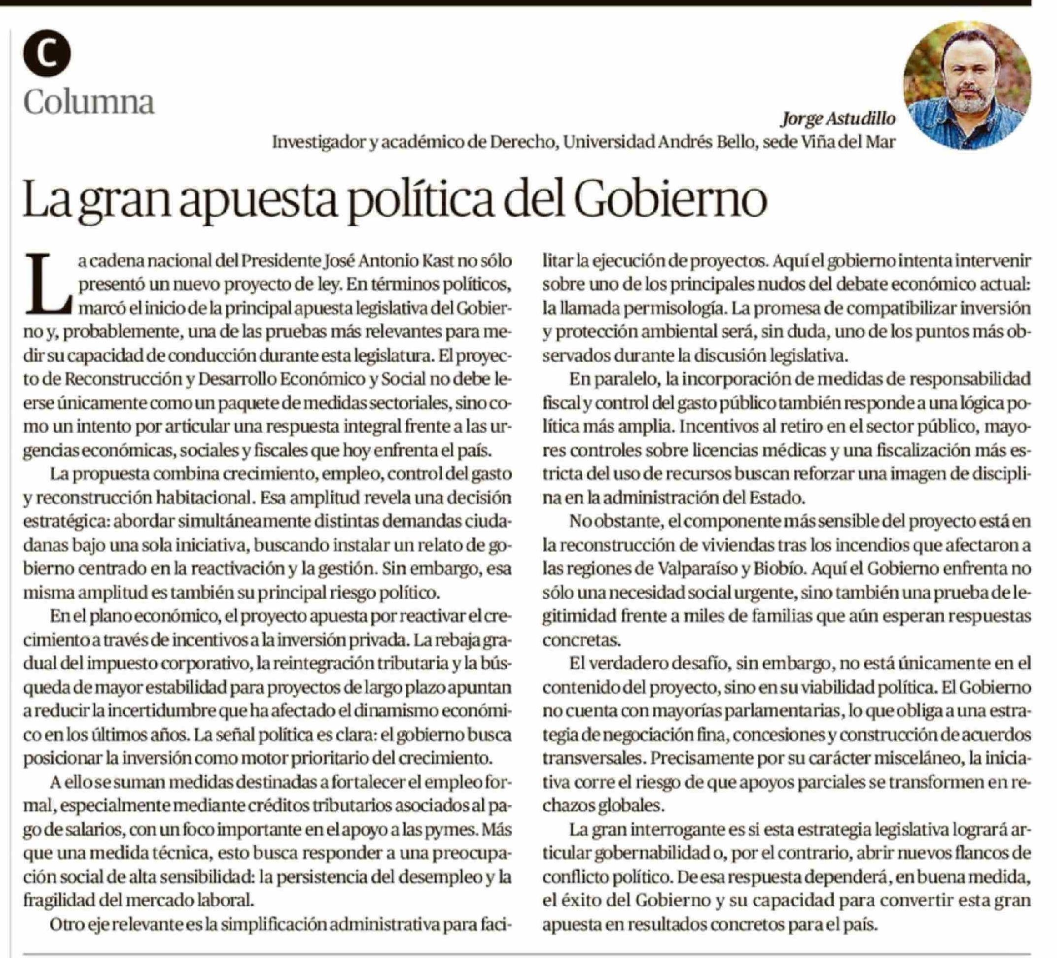 Columnas de Opinión: La gran apuesta política del Gobierno