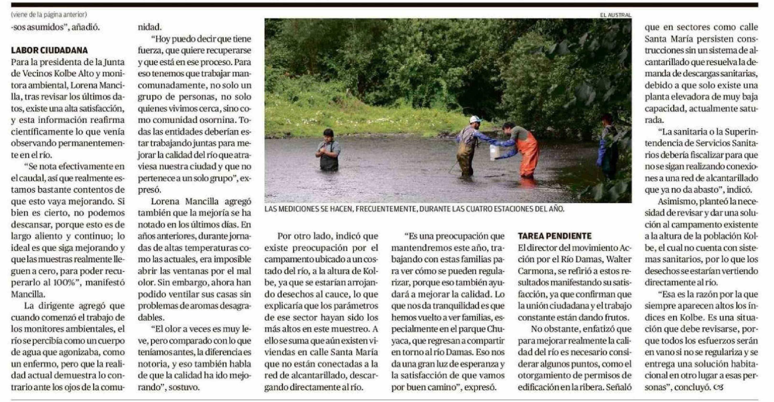 Muestreos confirman avances en la recuperación del río Damas