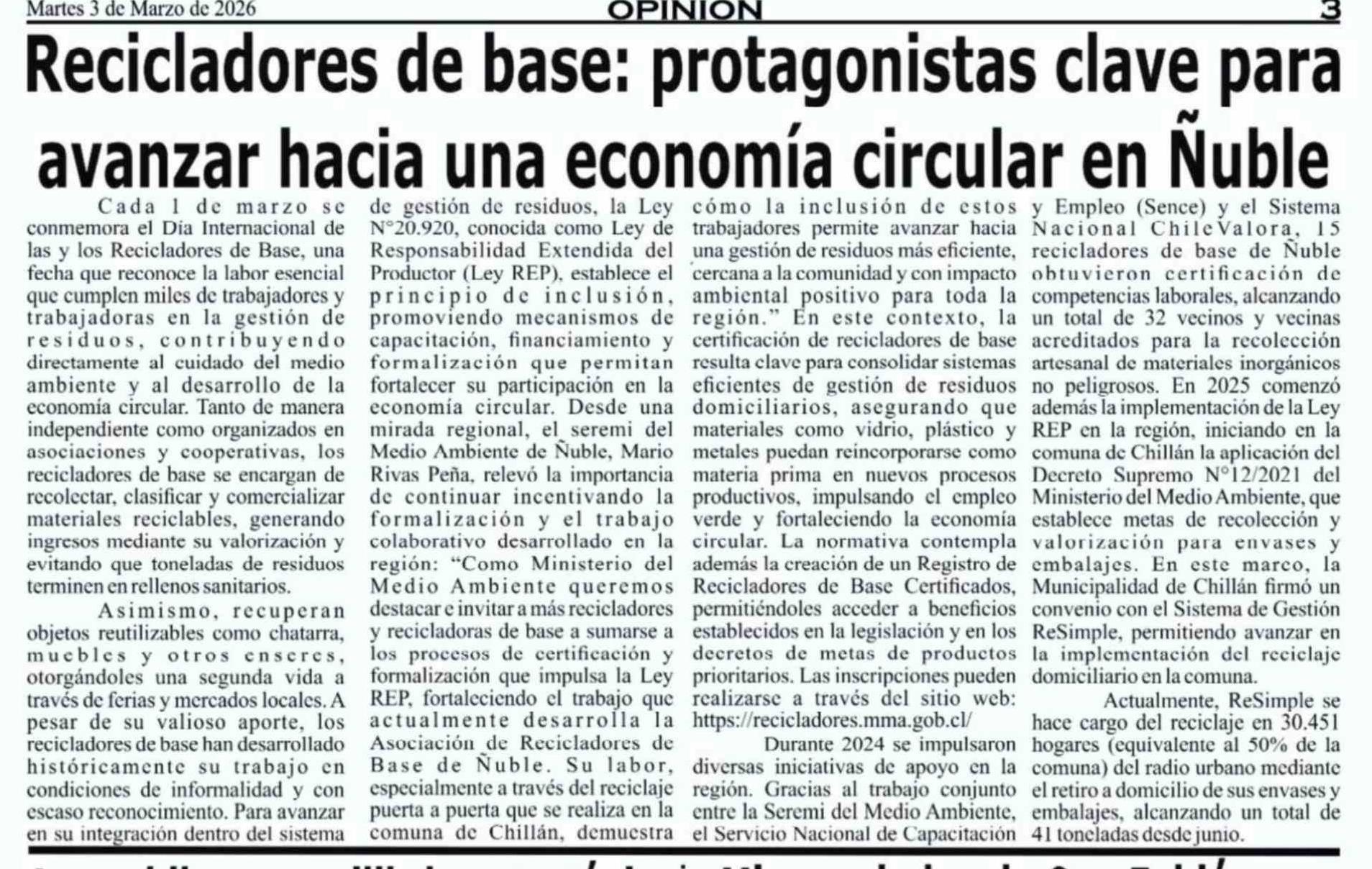 Recicladores de base: protagonistas clave para avanzar hacia una economía circular en Ñuble