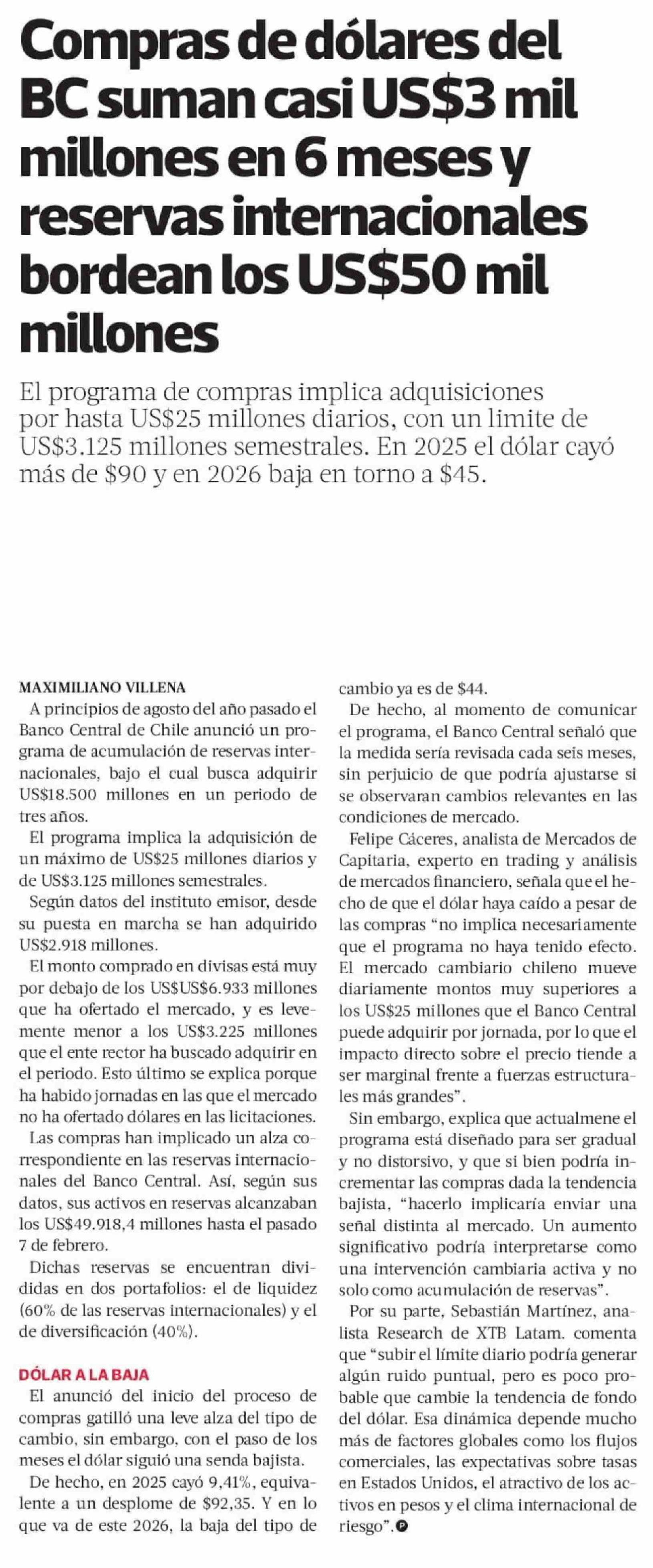 Compras de dólares del BC suman casi US$3 mil millones en 6 meses y reservas internacionales bordean los US$50 mil millones