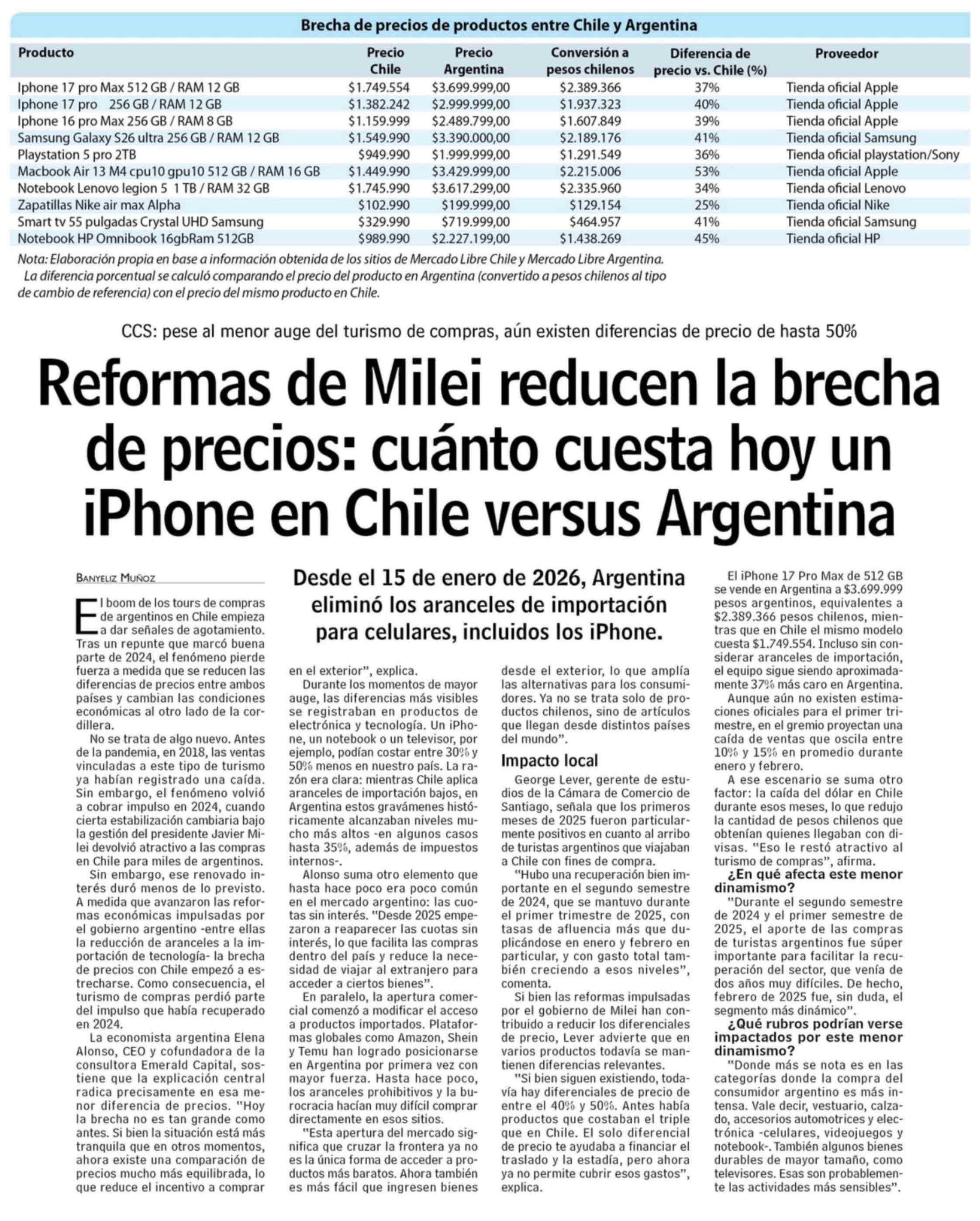 Reformas de Milei reducen la brecha de precios: cuanto cuesta hoy un iPhone en Chile versus Argentina