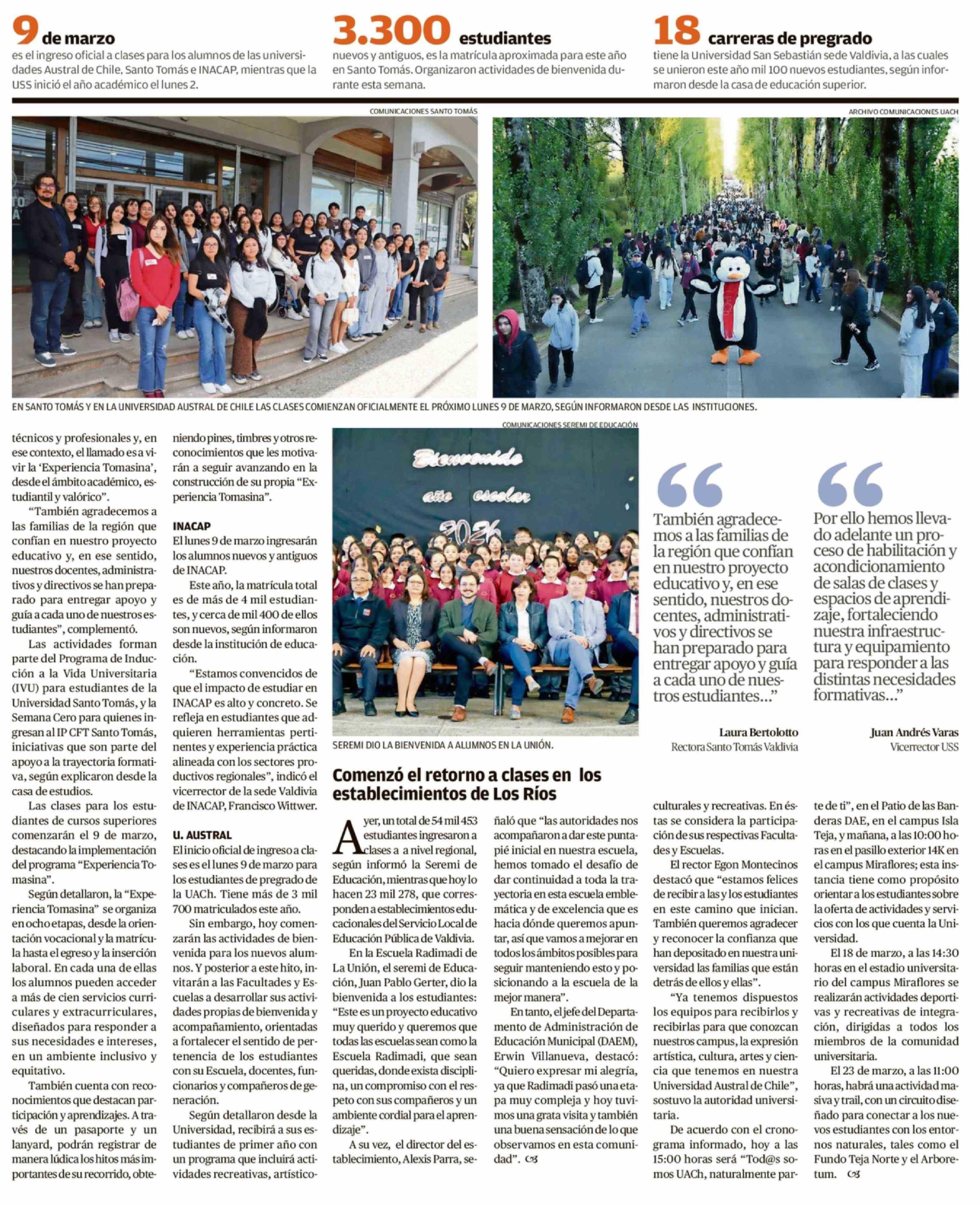 Más de 16 mil estudiantes ingresan a clases en universidades de la región