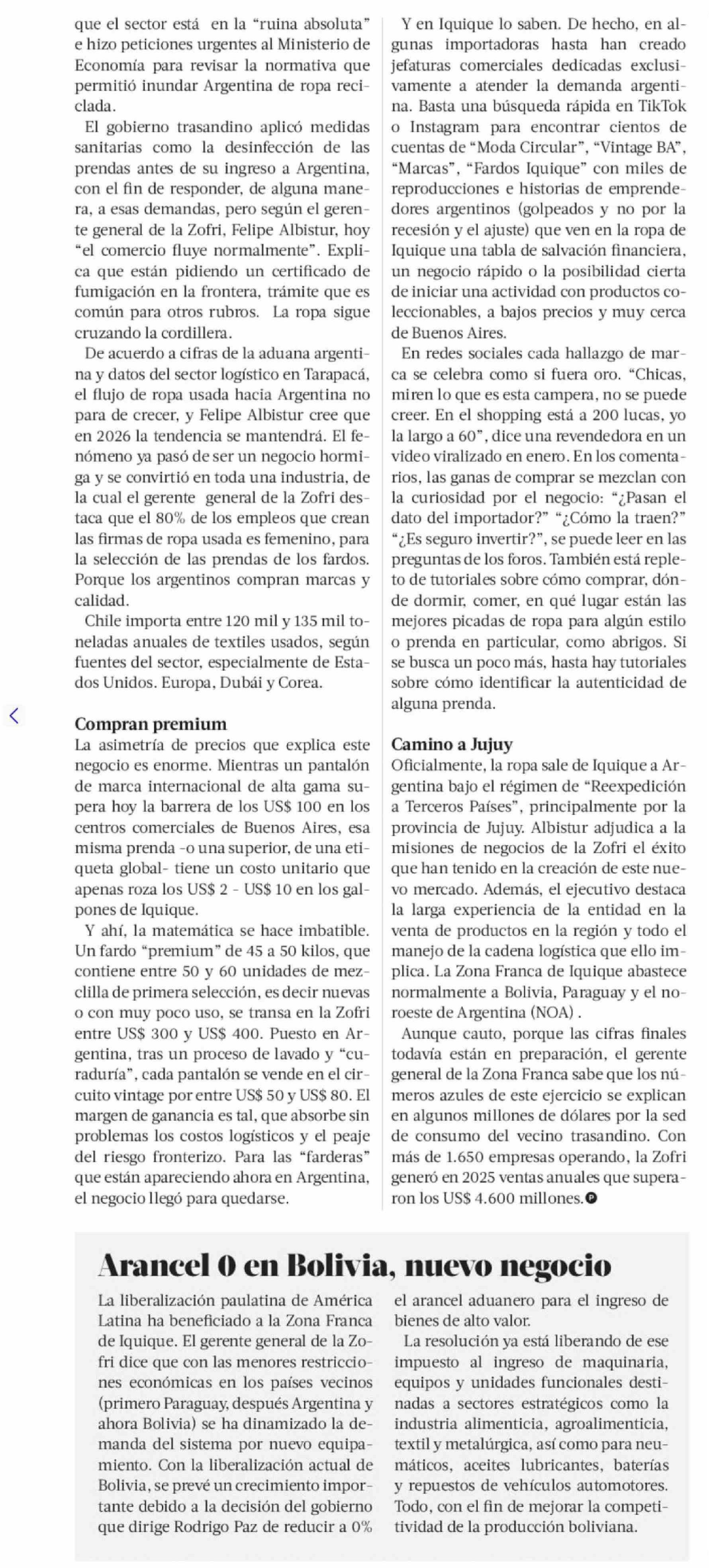 Iquique inunda Argentina de ropa usada