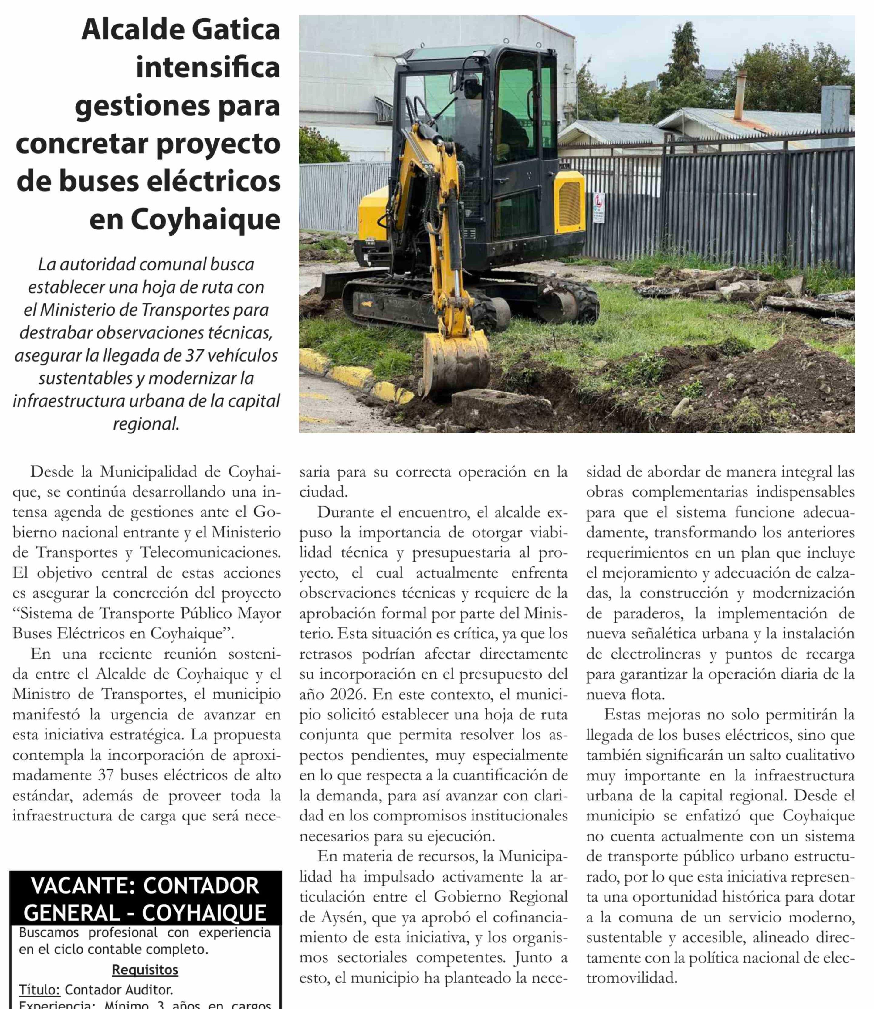Alcalde Gatica intensifica gestiones para concretar proyecto de buses eléctricos en Coyhaique