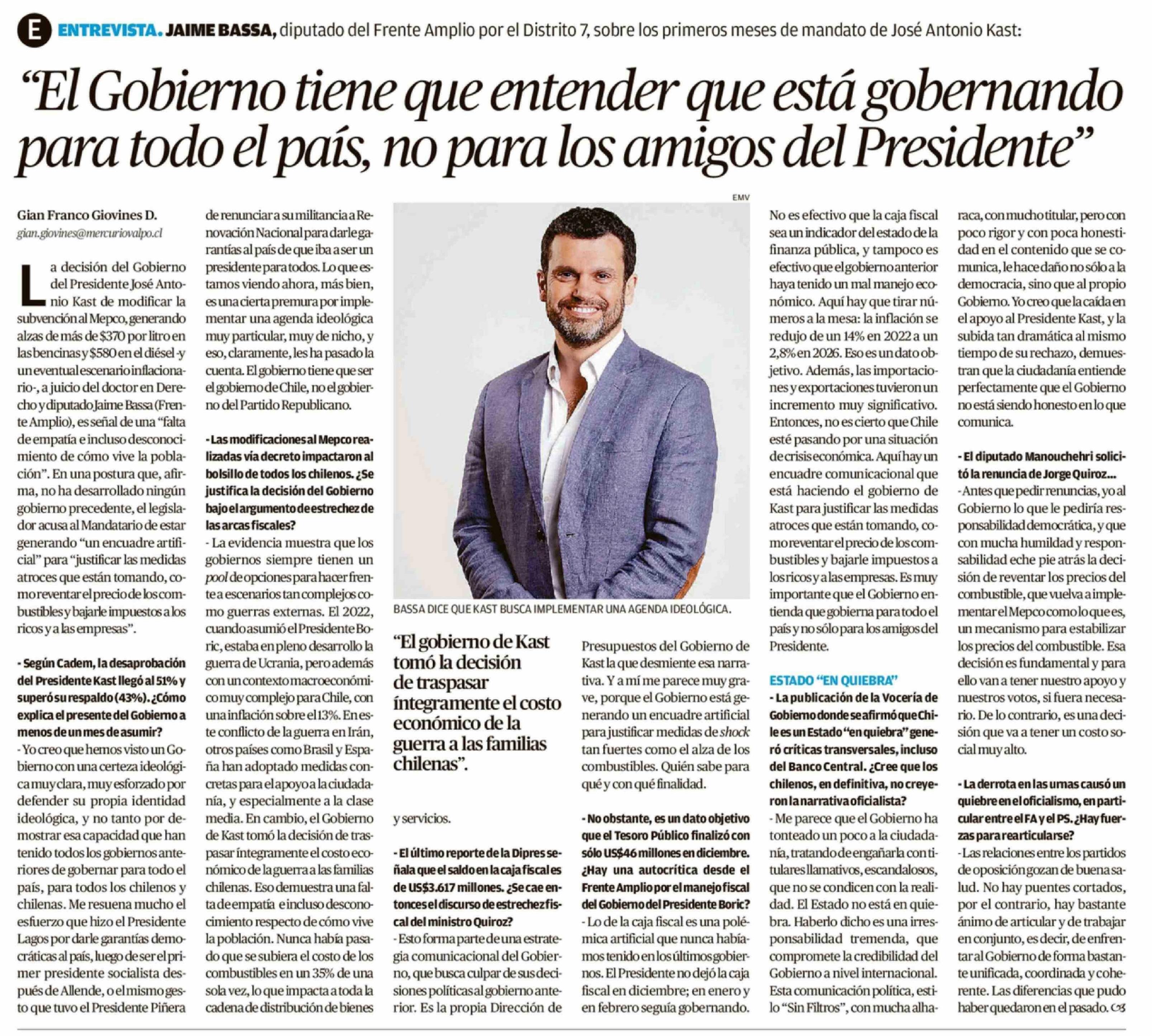 "El Gobierno tiene que entender que está gobernando para todo el país, no para los amigos del Presidente"