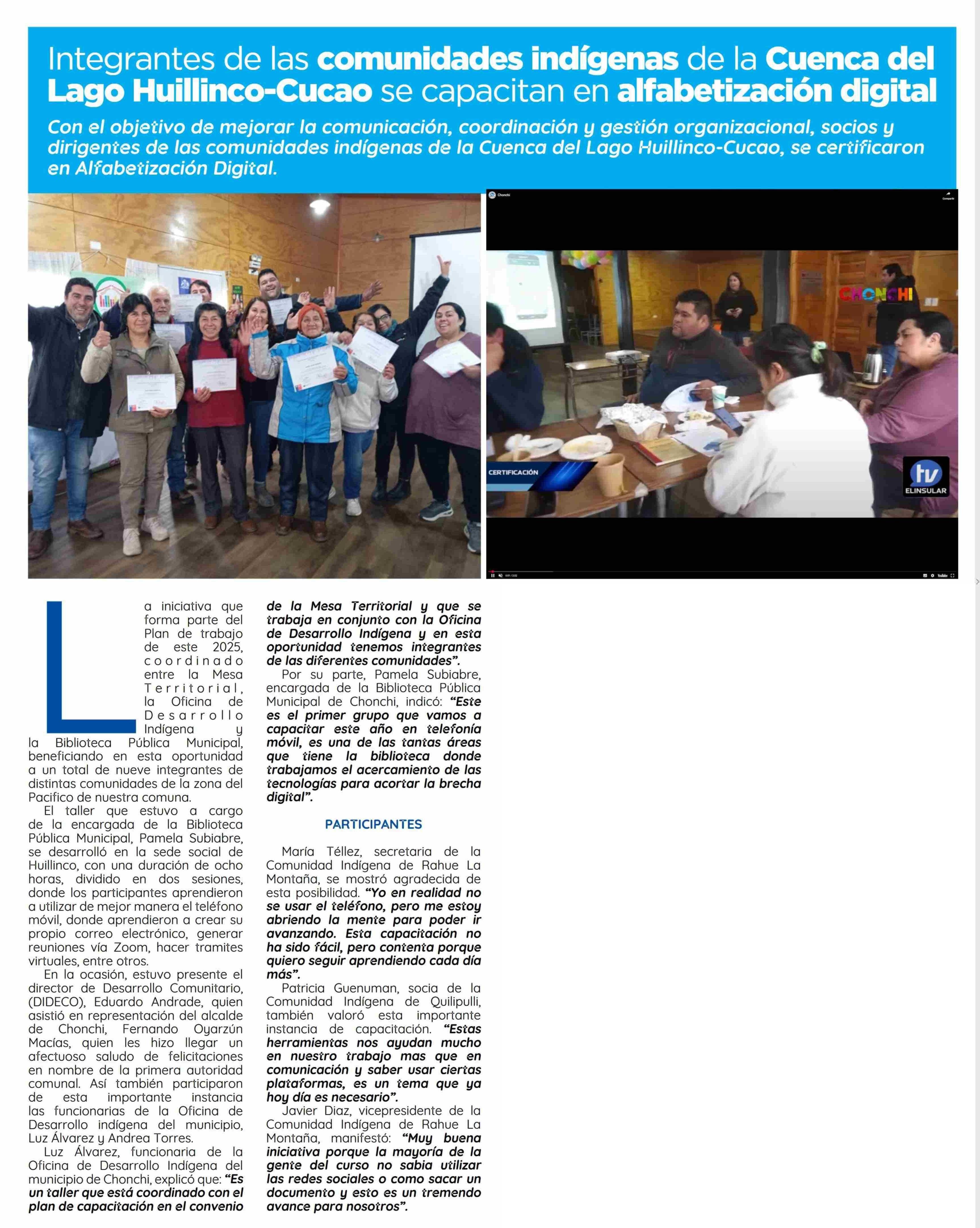 Integrantes de las comunidades indígenas de la Cuenca del Lago Huillinco-Cucao se capacítan en alfabetización digital