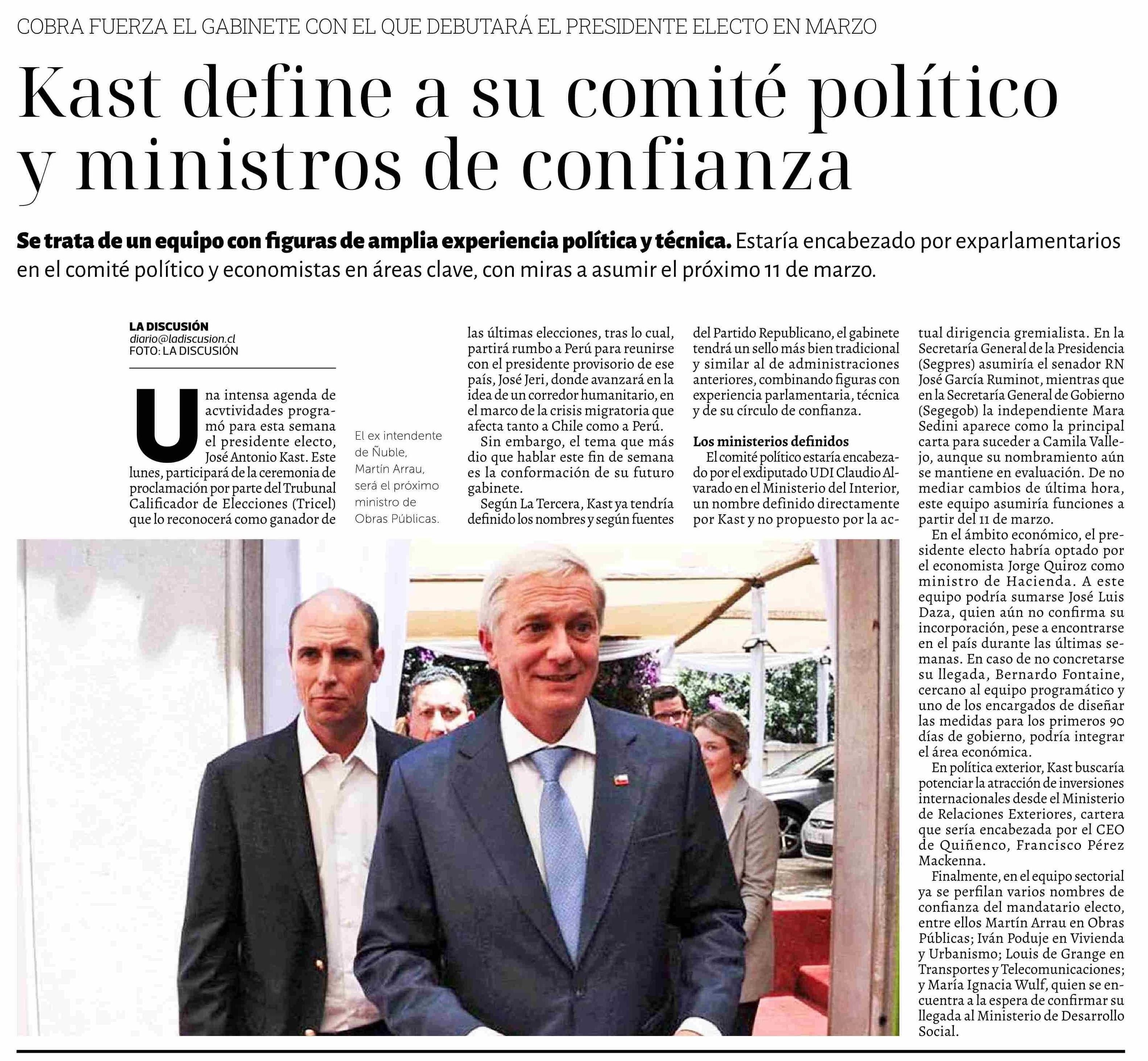 Kast define a su comité político y ministros de confianza