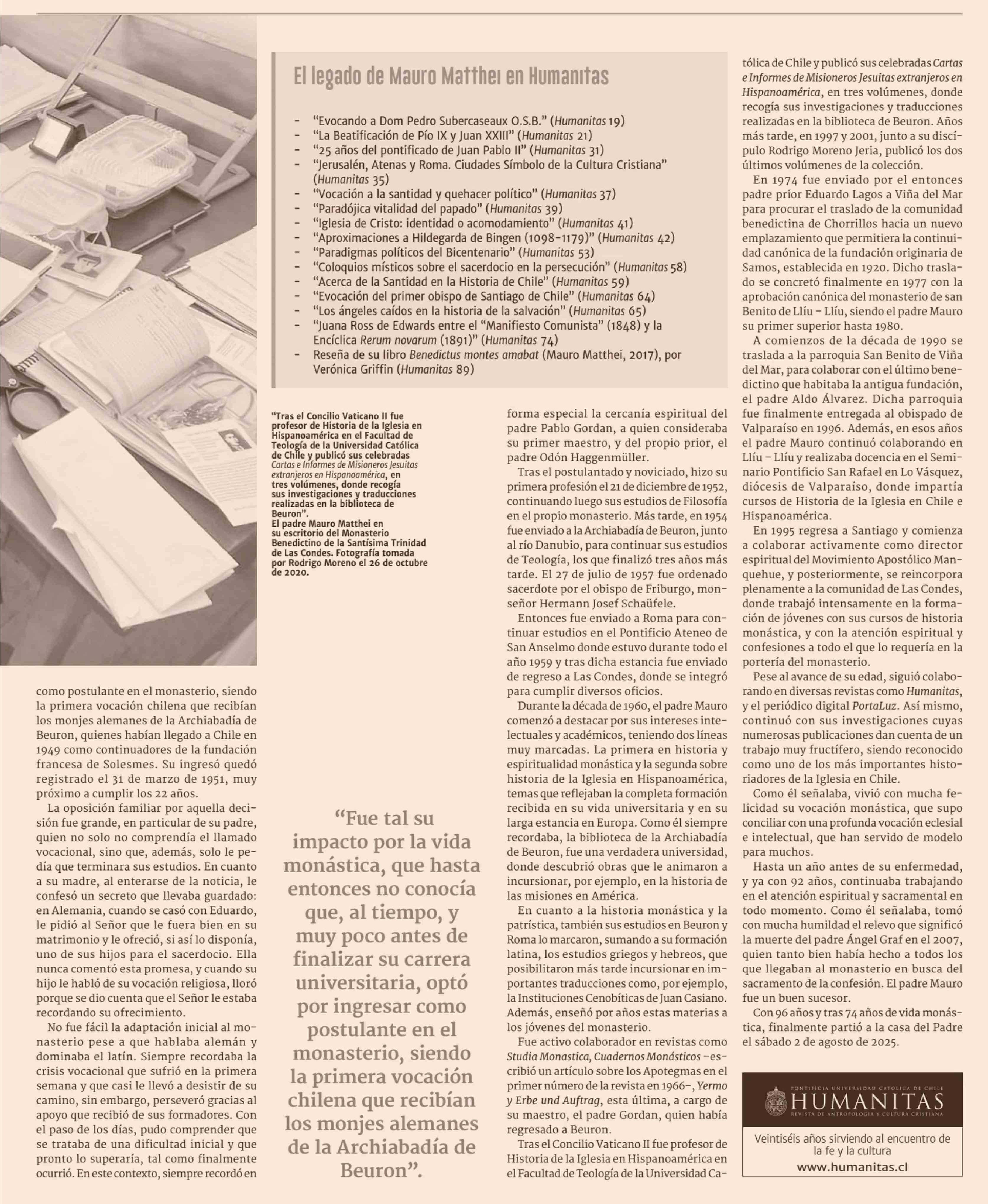 Semblanza de Mauro Matthei O.S.B.