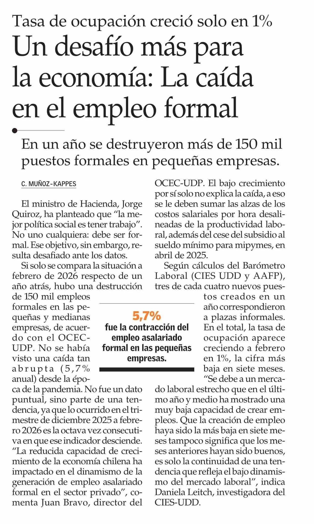 Un desafío más para la economía: La caída en el empleo formal