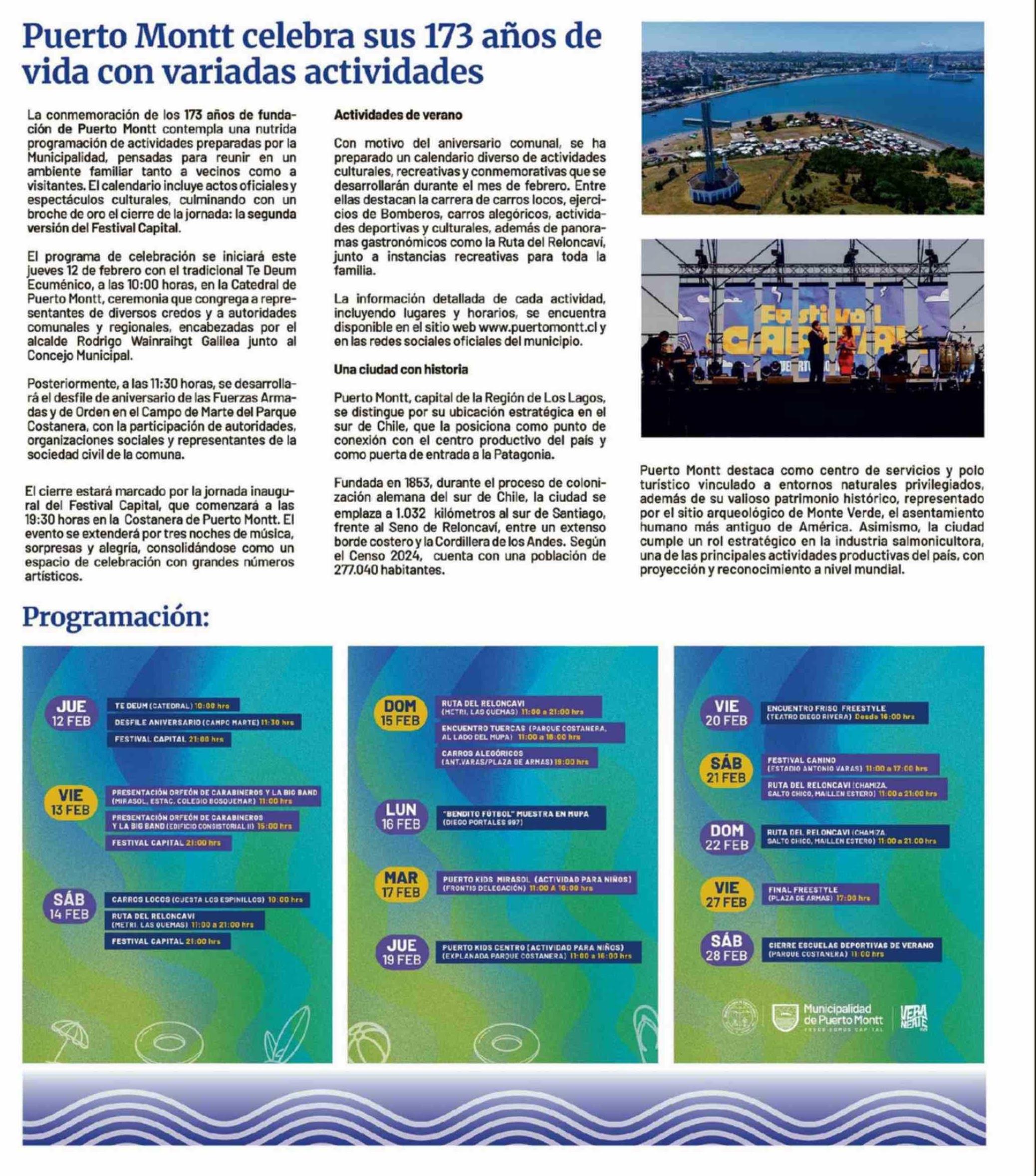 Puerto Montt celebra sus 173 años de vida con variadas actividades