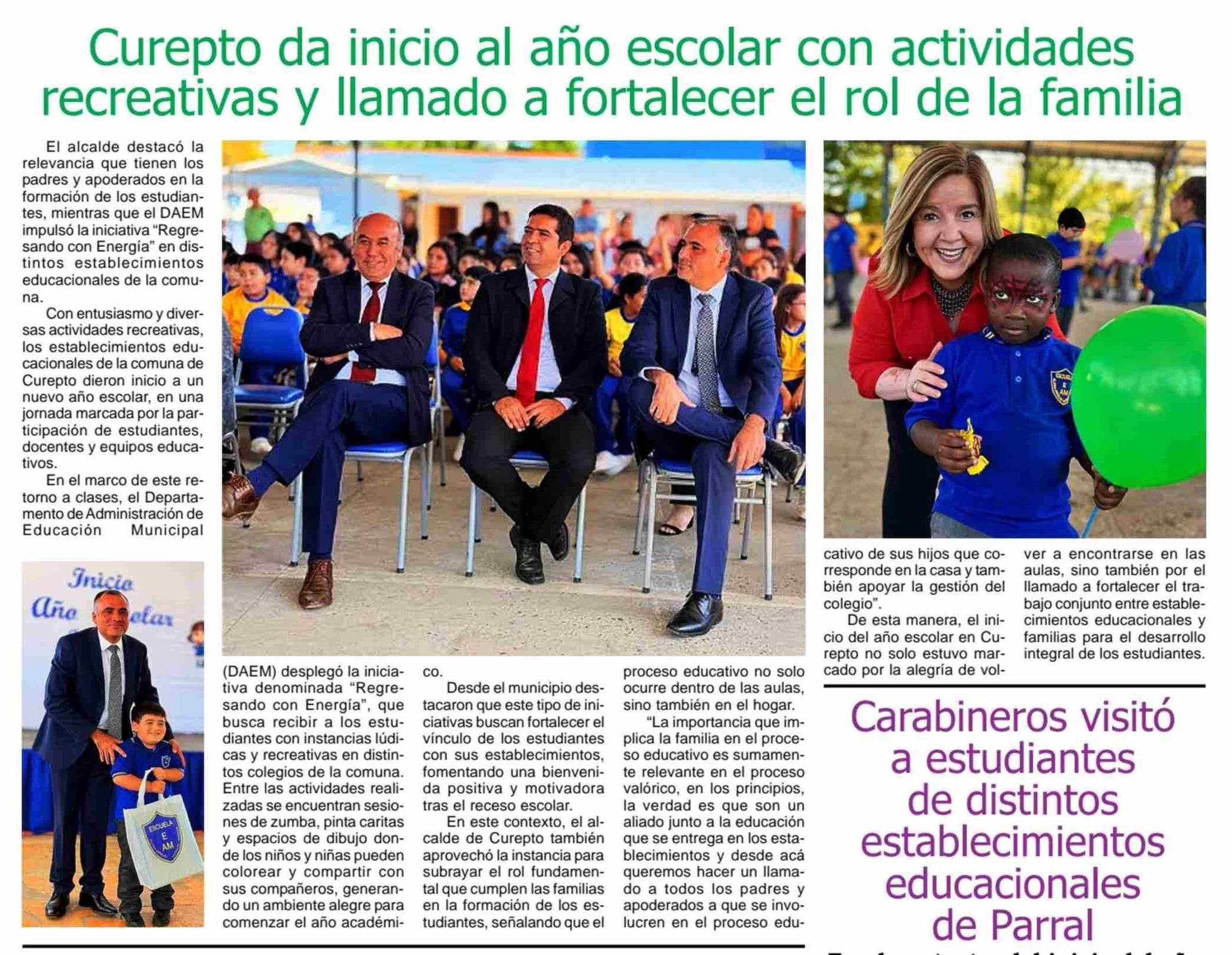Curepto da inicio al año escolar con actividades recreativas y llamado a fortalecer el rol de la familia