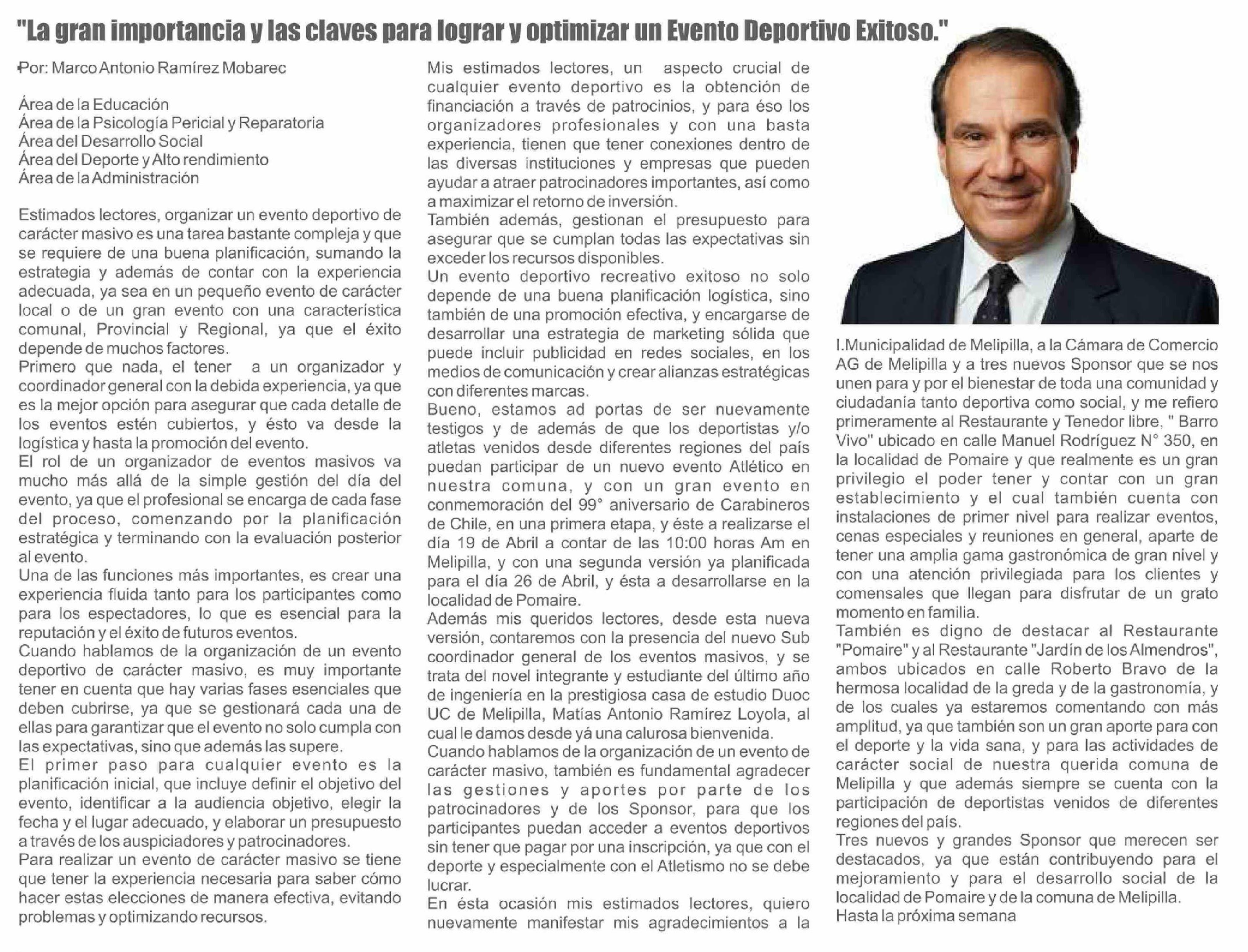Columnas de Opinión: "La gran importancia y las claves para lograr y optimizar un Evento Deportivo Exitoso."