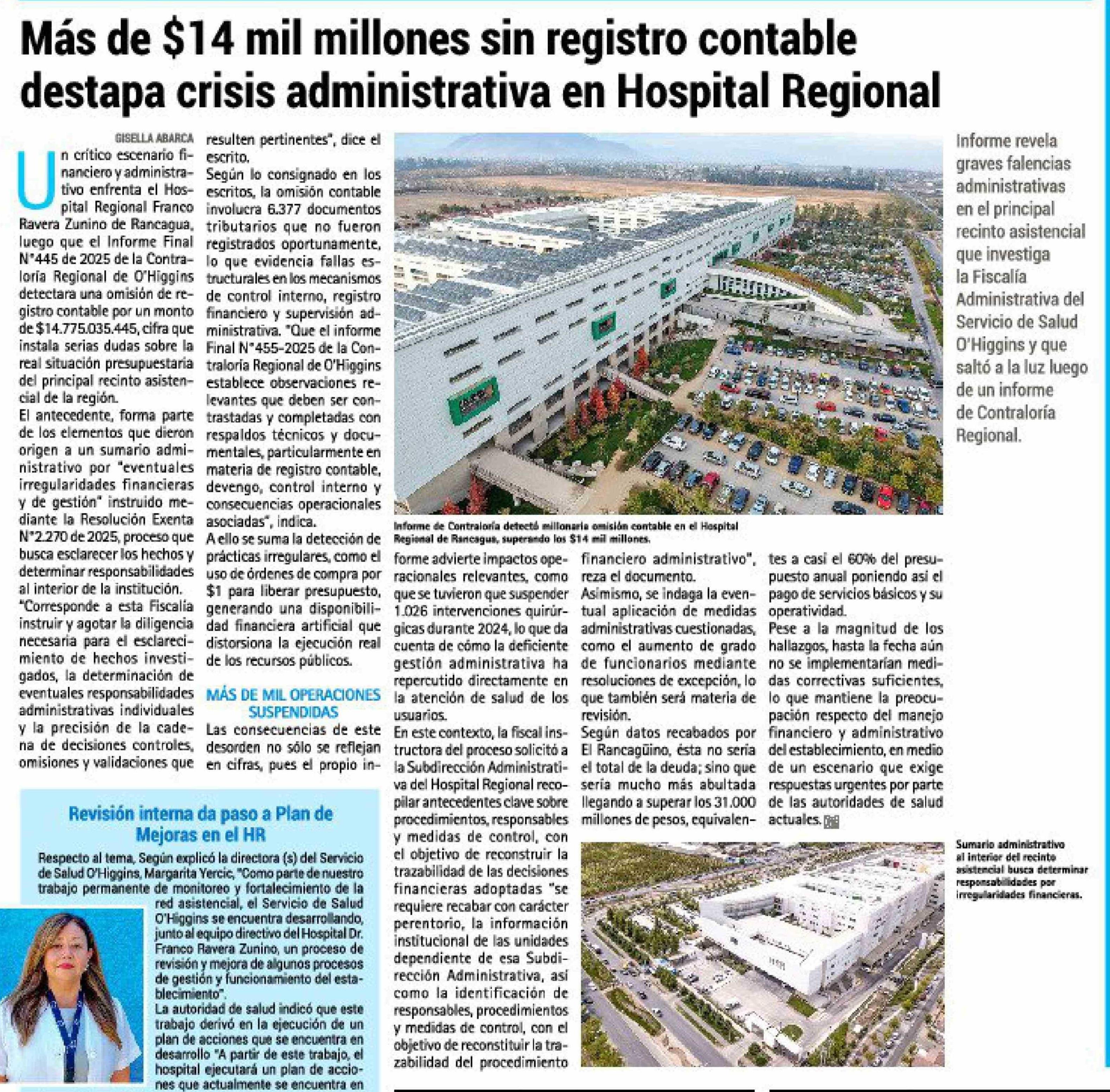 Título: Más de $14 mil millones sin registro contable destapa crisis administrativa en Hospital Regional