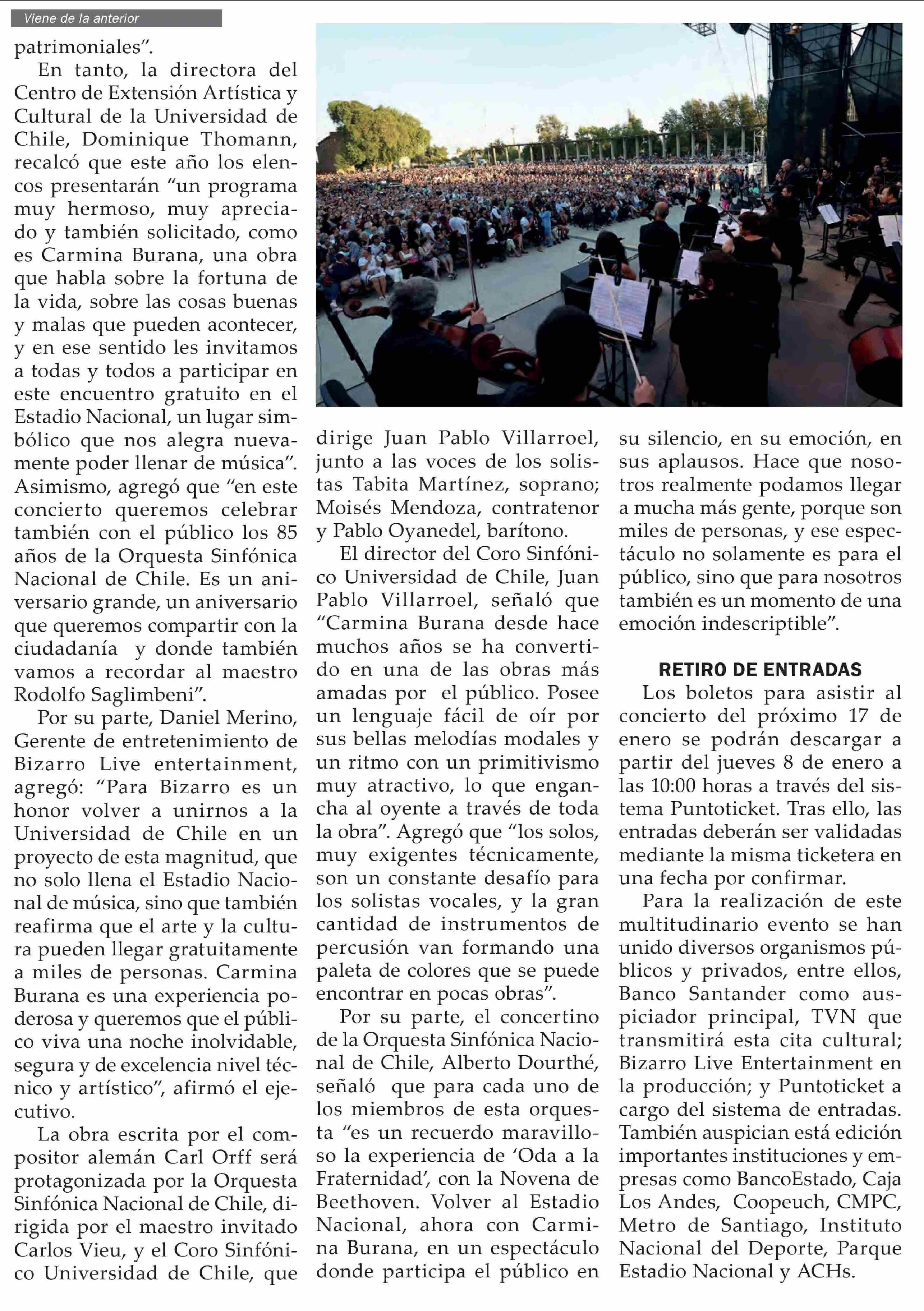 U. de Chile y sus elencos artísticos regresan al Estadio Nacional con "Carmina Burana"