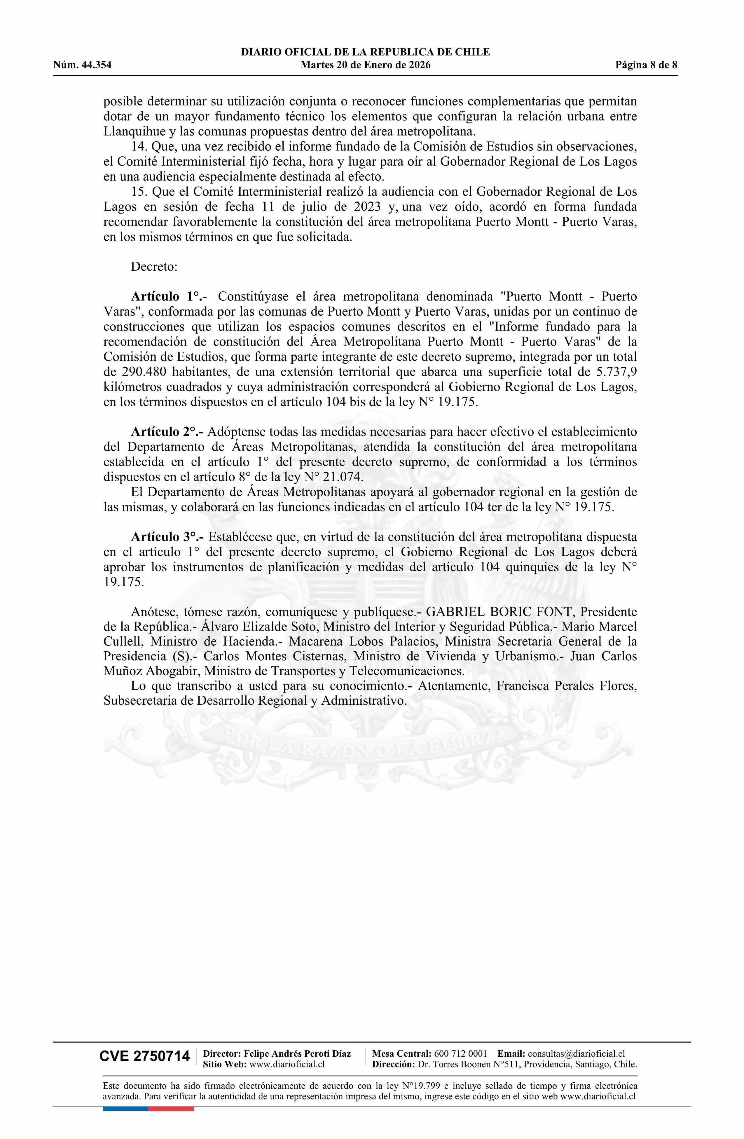 | Título: | Decreto número 87, de 2025.- Constituye Área Metropolitana Puerto Montt - Puerto Varas |