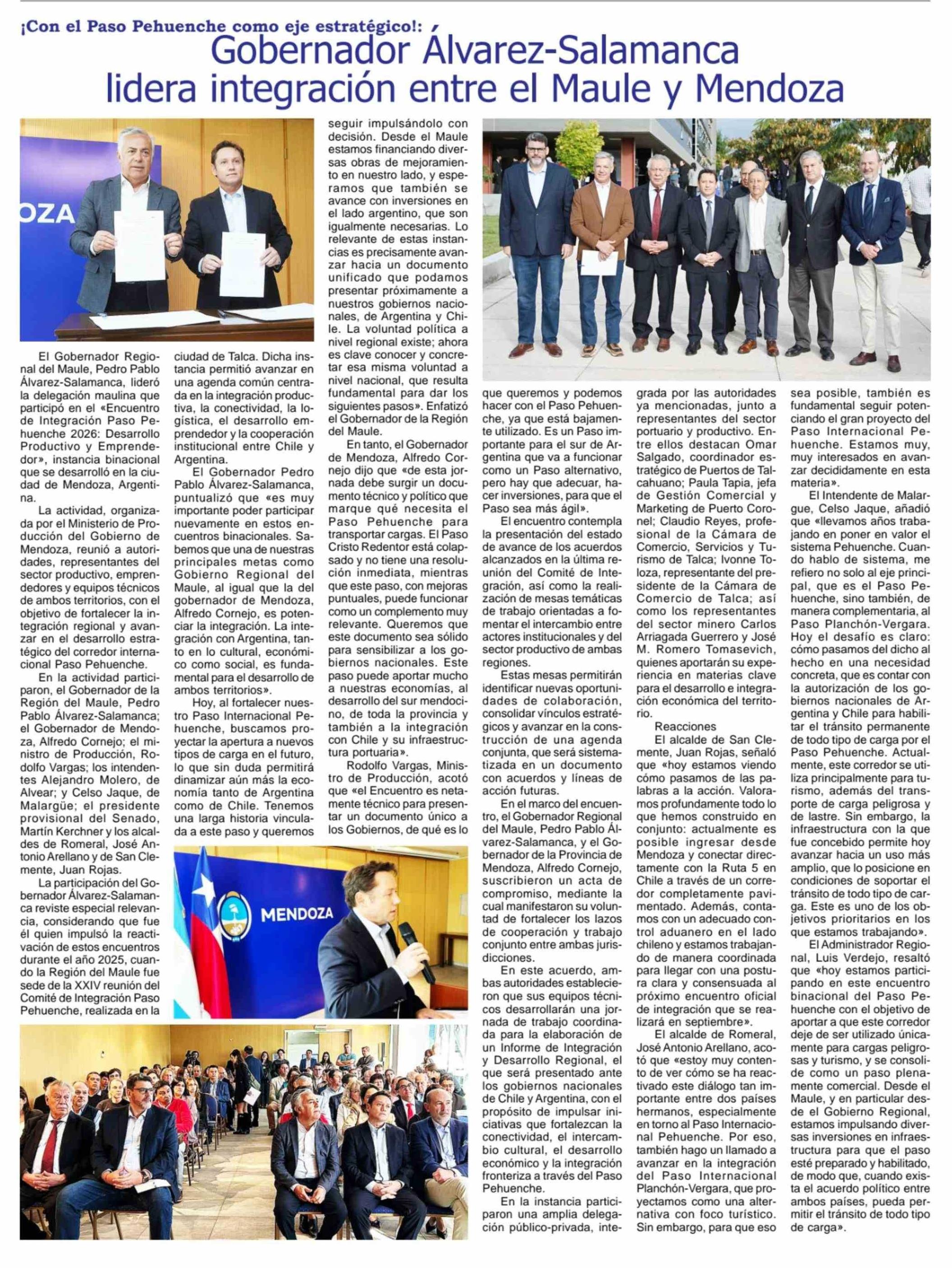 Gobernador Alvarez-Salamanca lidera integración entre el Maule y Mendoza