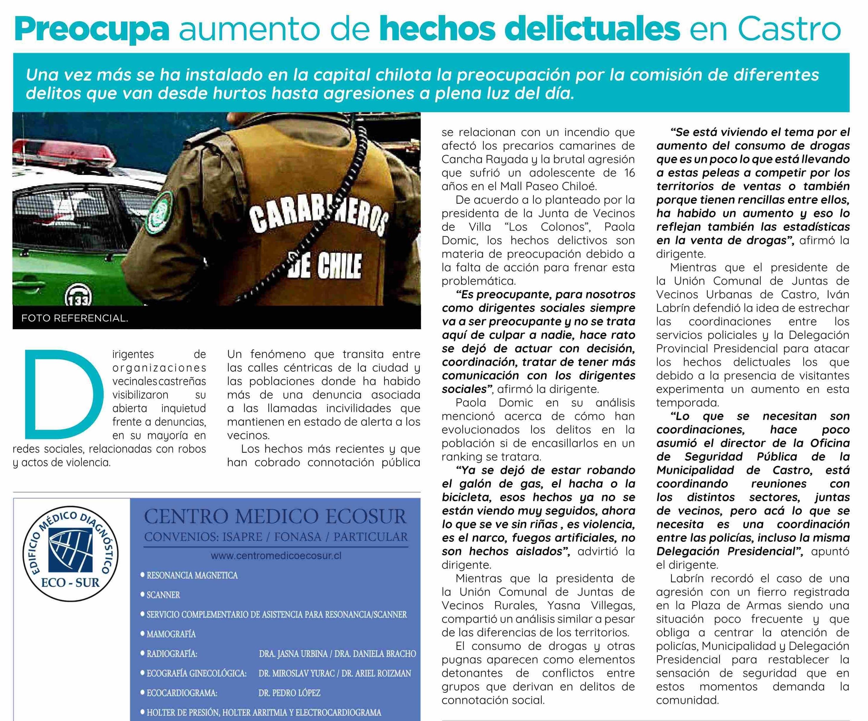 Preocupa aumento de hechos delictuales en Castro