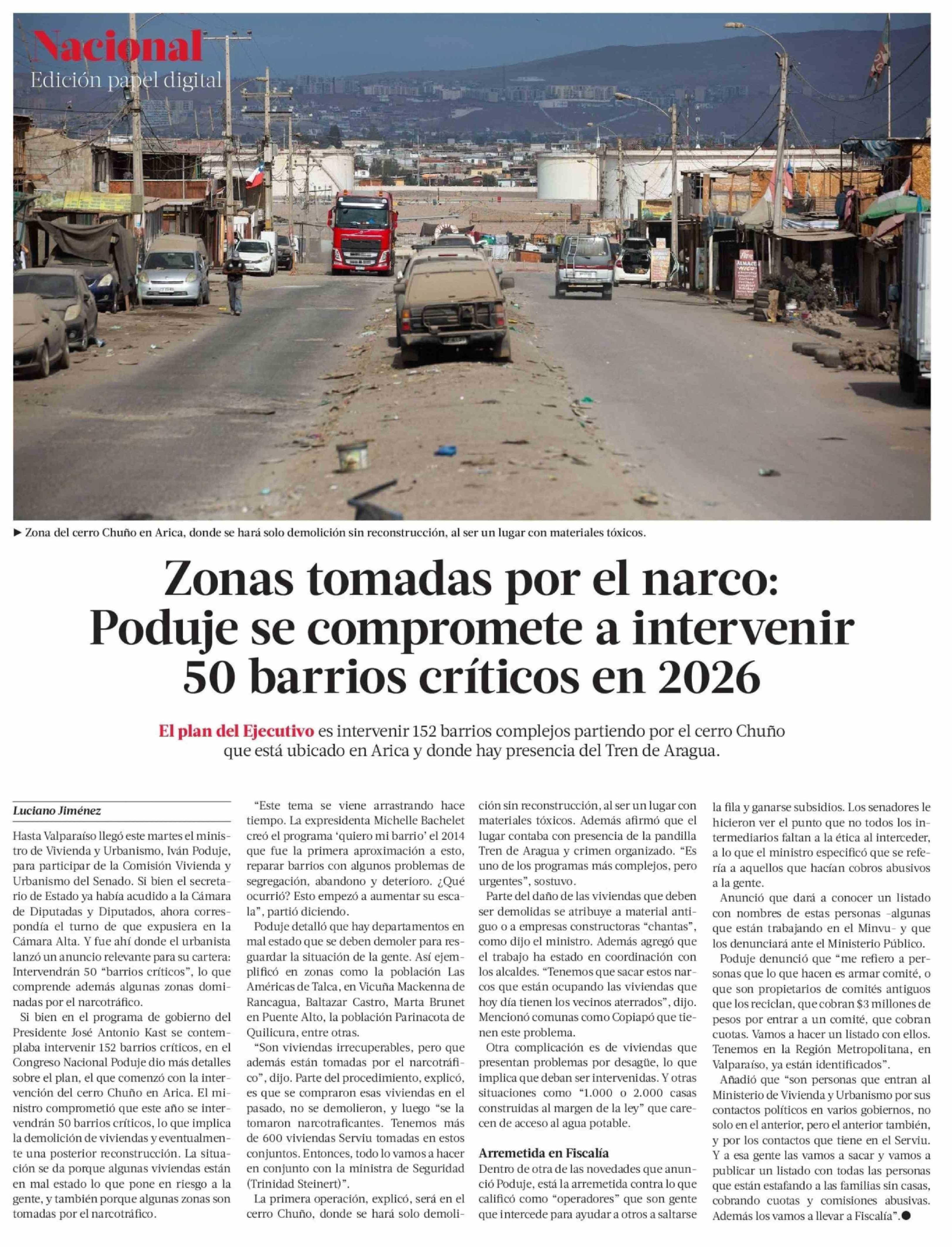 Zonas tomadas por el narco: Poduje se compromete a intervenir 50 barrios críticos en 2026