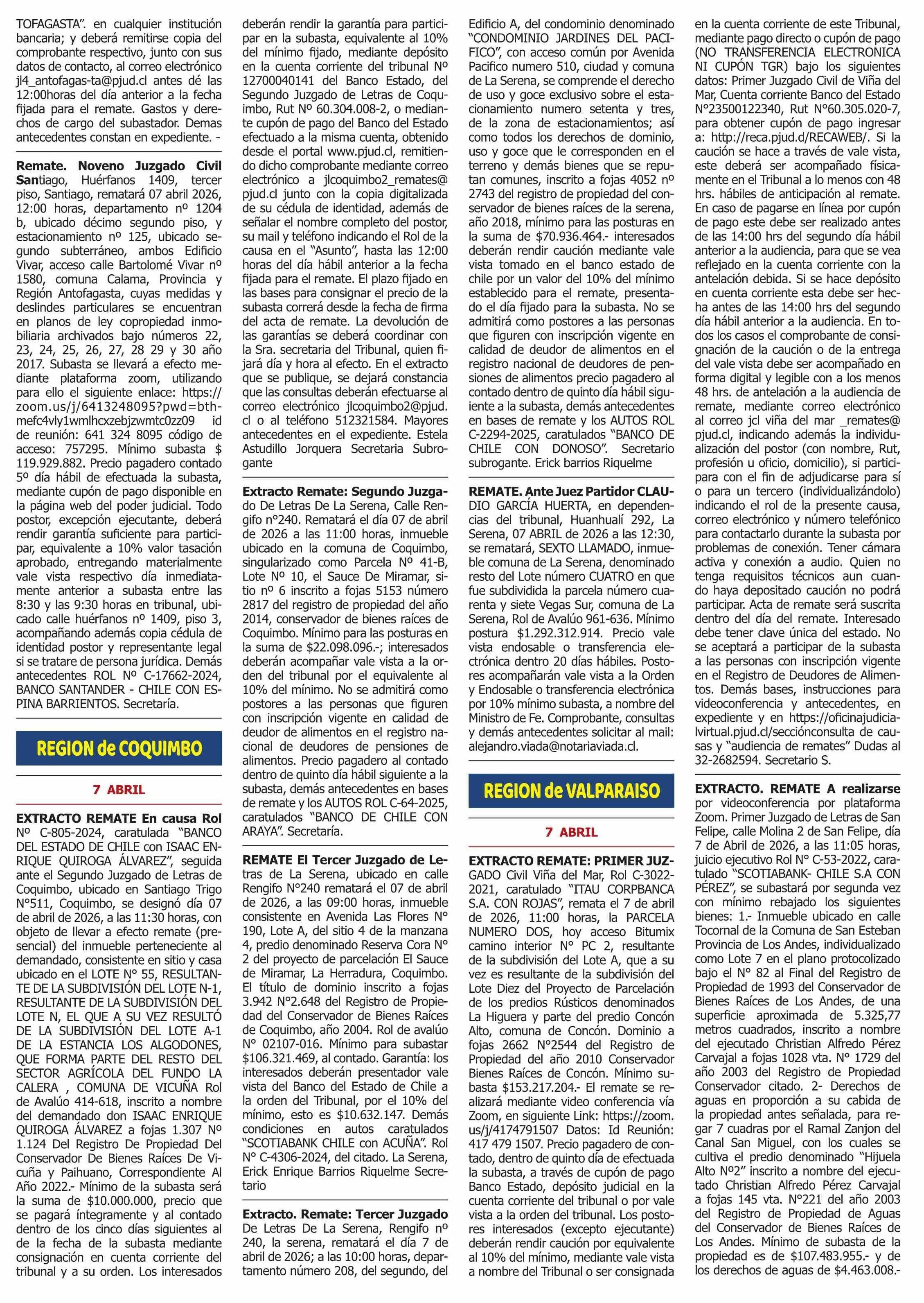 REMATES: REMATES de PROPIEDADES (ORDENADOS por REGIONES