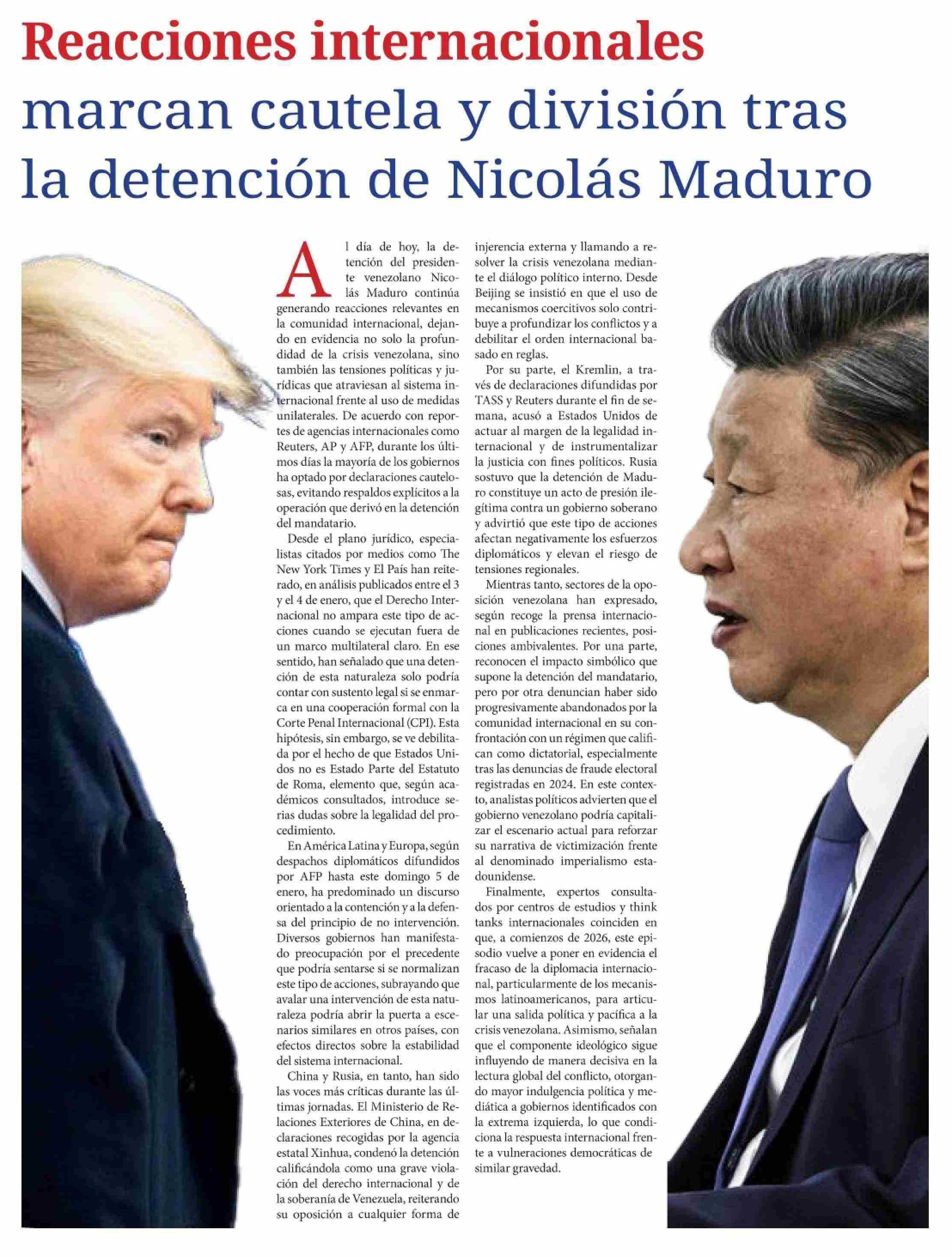 Reacciones internacionales marcan cautela y división tras la detención de Nicolás Maduro