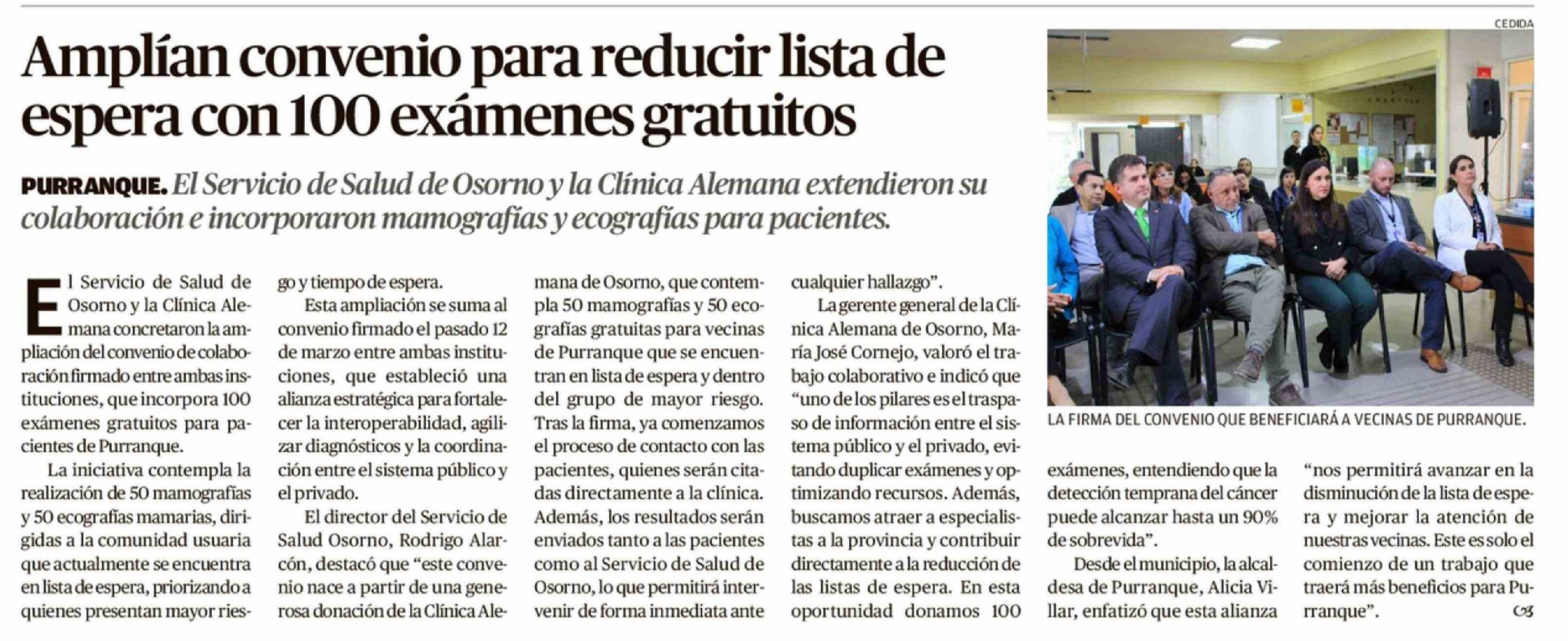 Amplían convenio para reducir lista de espera con 100 exámenes gratuitos