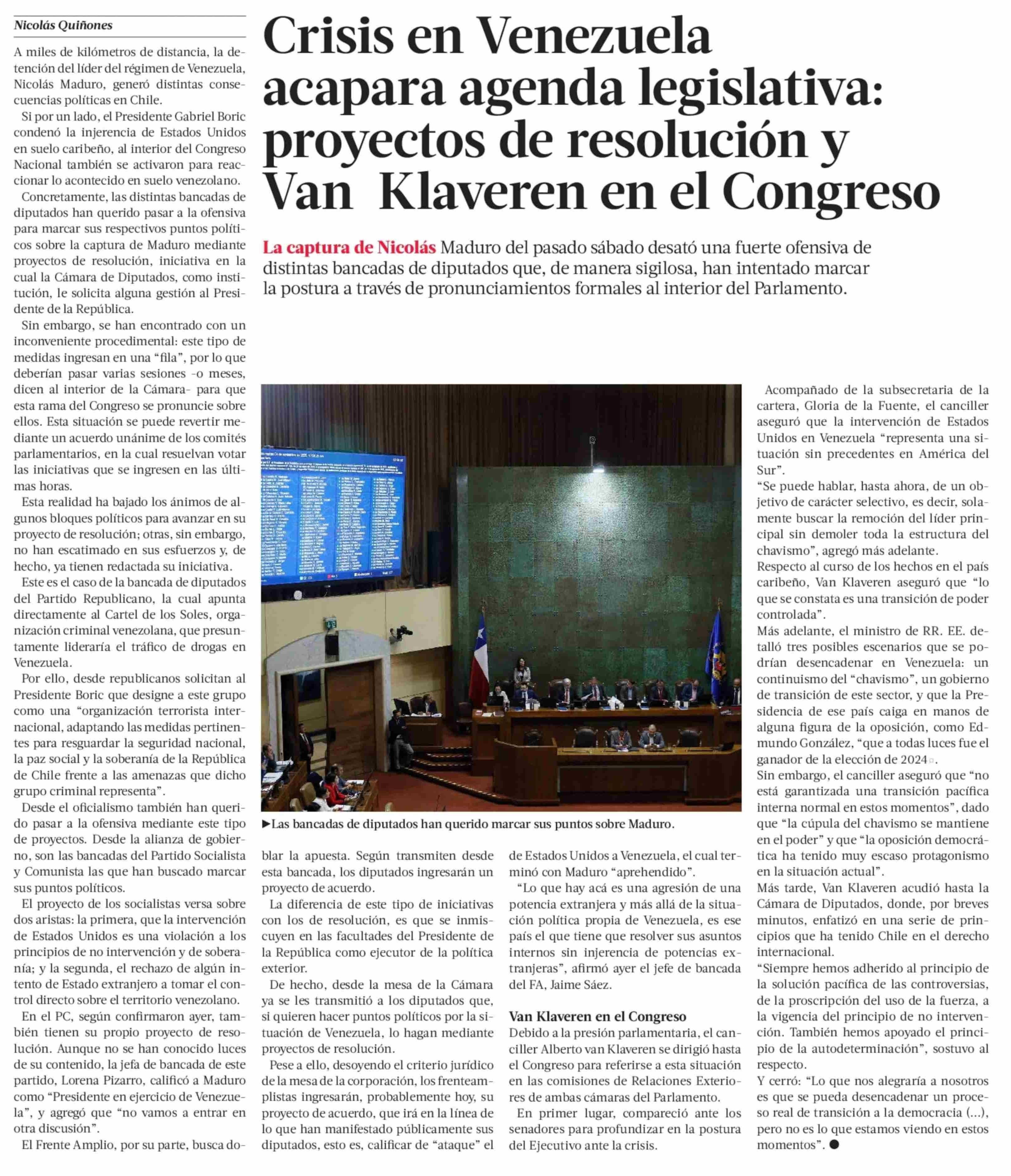 Crisis en Venezuela acapara agenda legislativa: proyectos de resolución y Van Klaveren en el Congreso