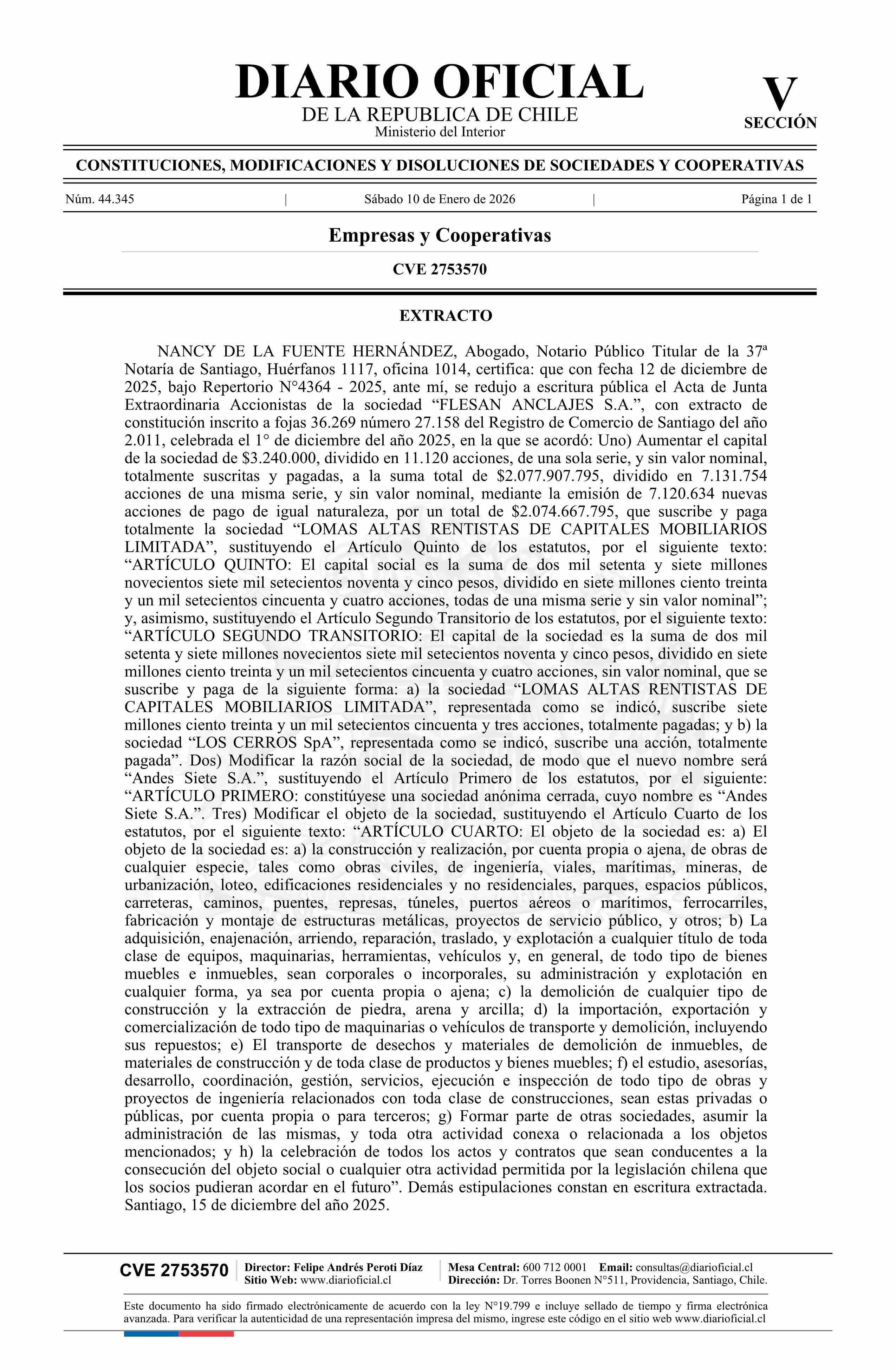 Diario Oficial Edición Electrónica (Diario Oficial de Chile - 5 Empresas Y Cooper)