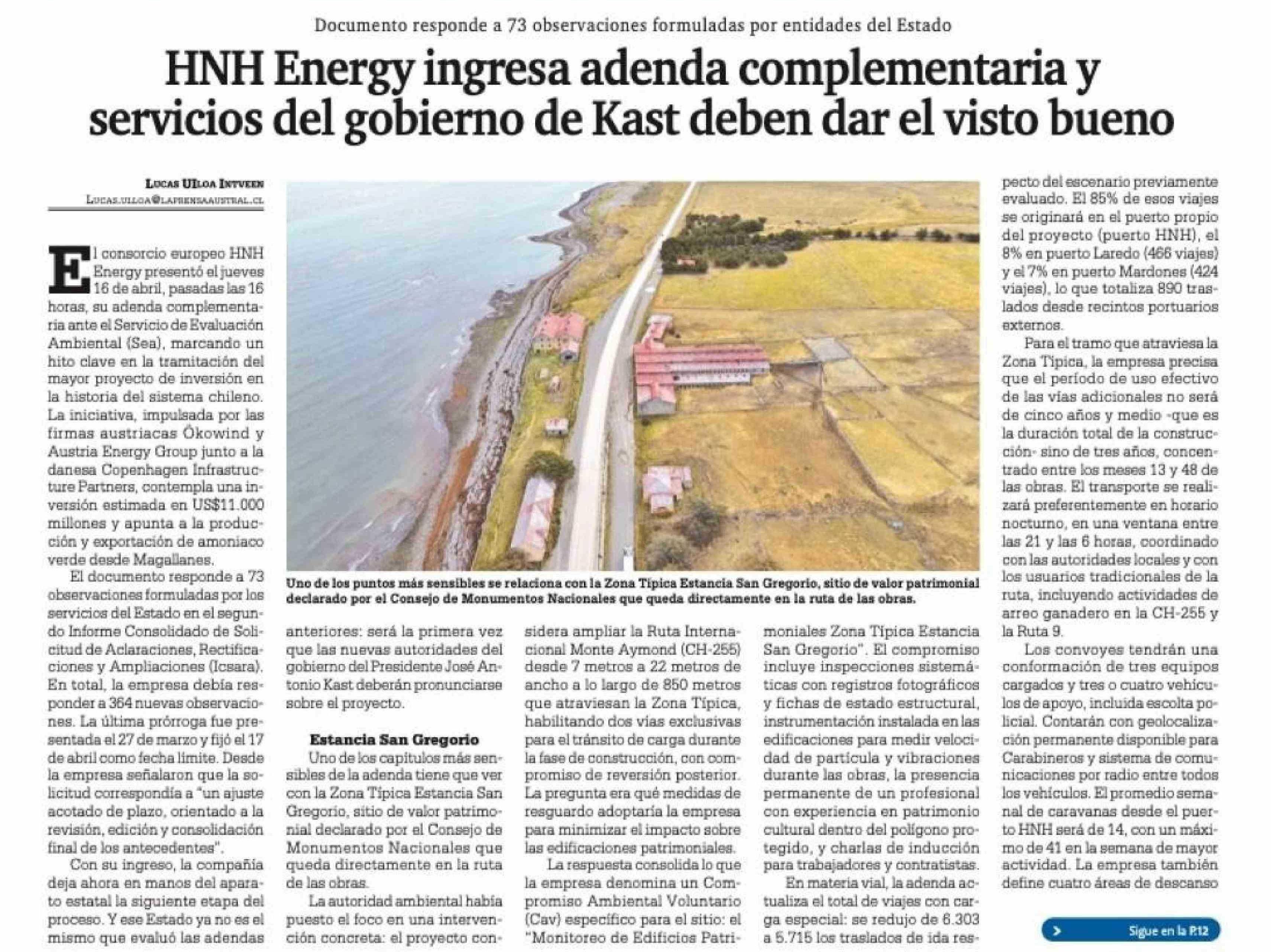 HNH Energy ingresa adenda complementaria y servicios del gobierno de Kast deben dar el visto bueno